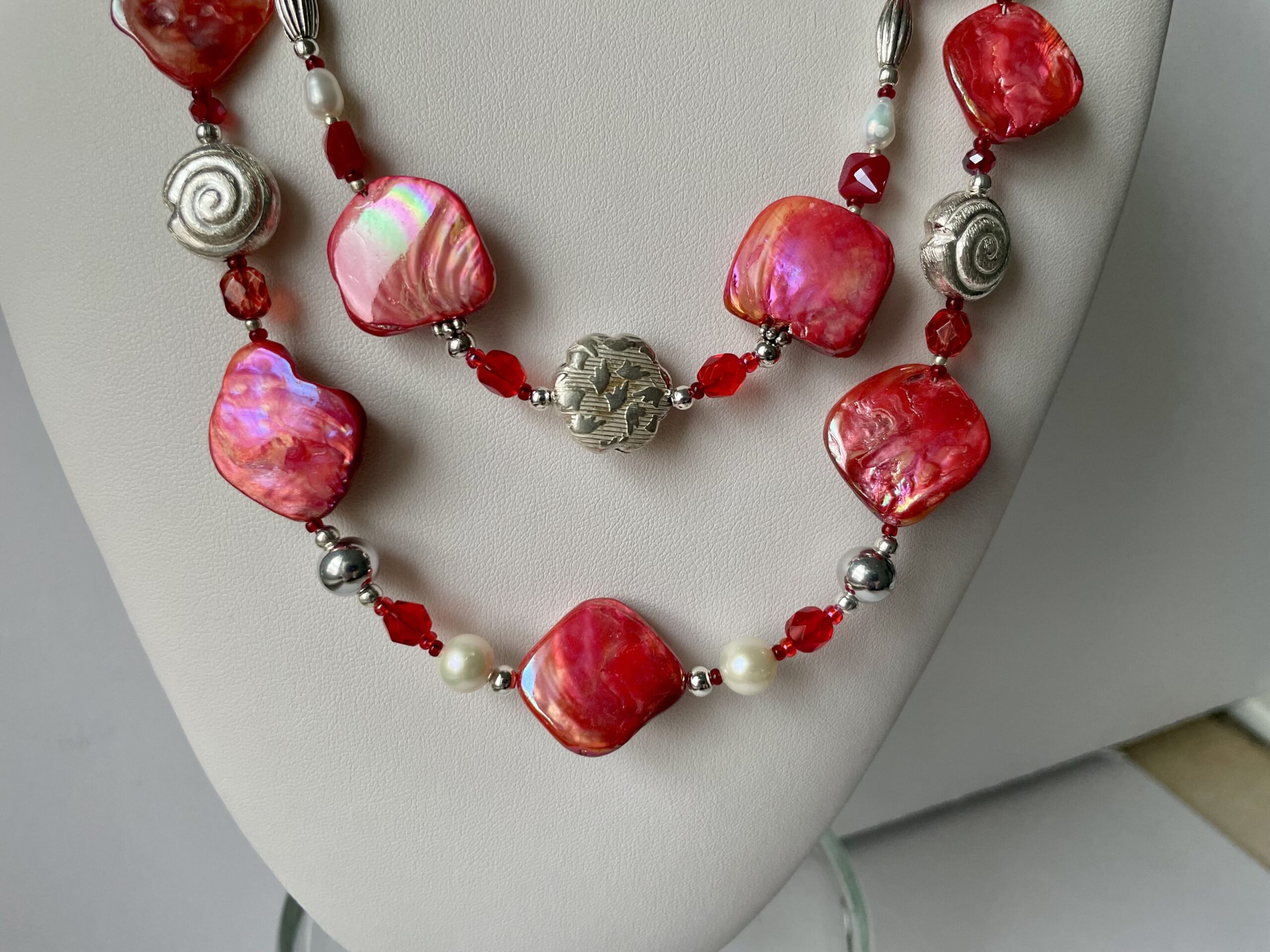 Collana LUMINOSA ROSSA in madreperla e Pietre dure.