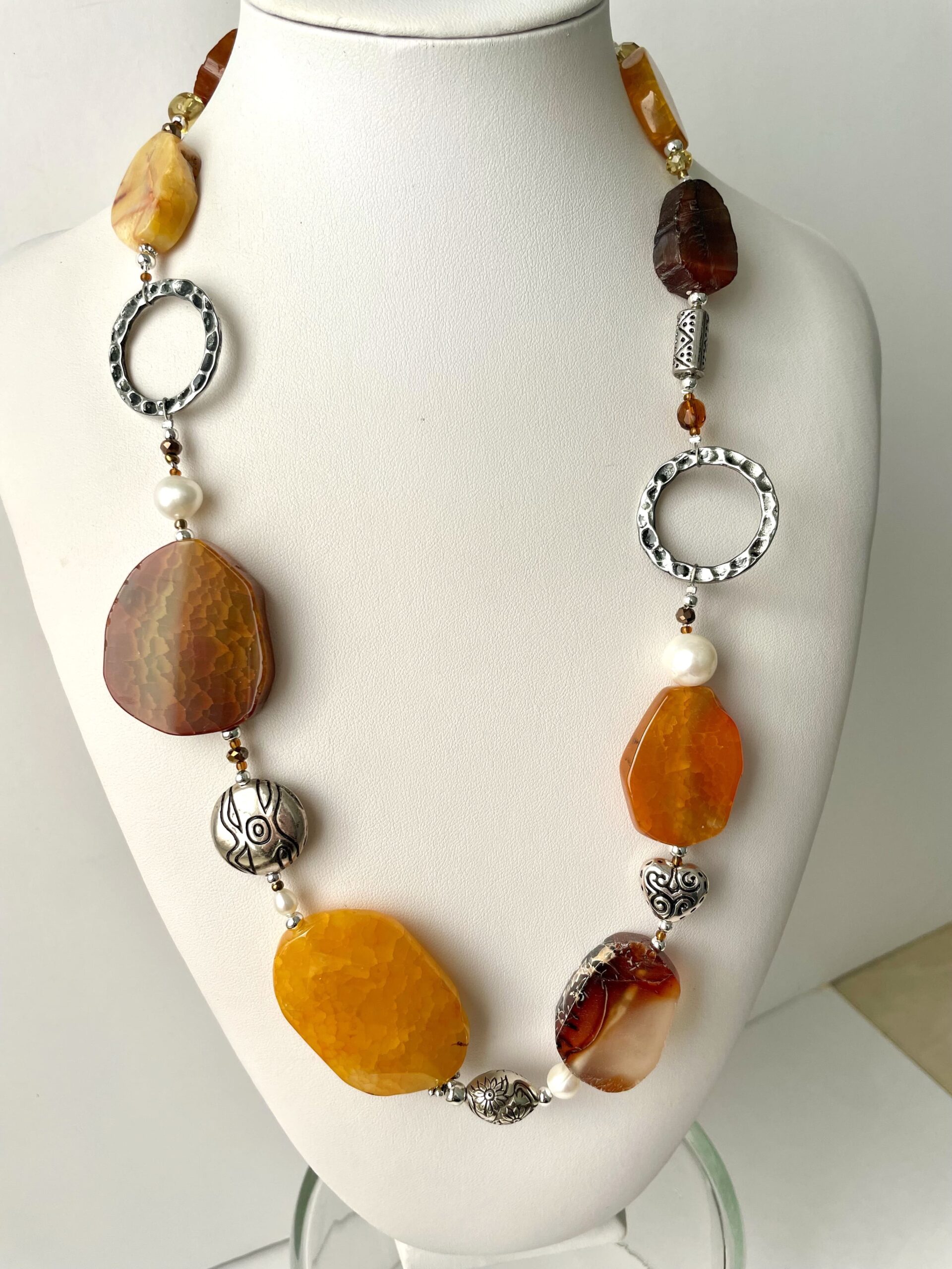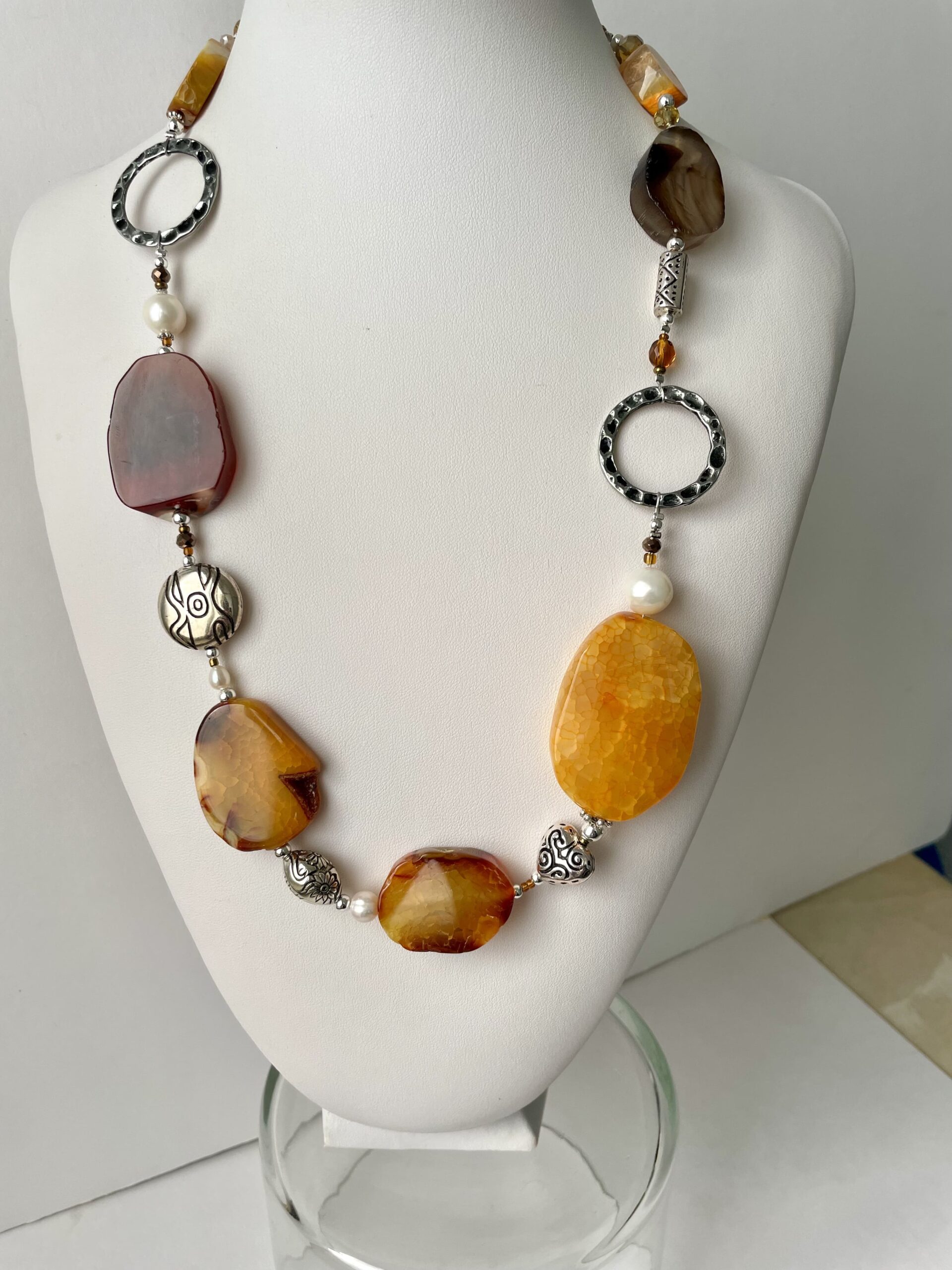 Collana ZAFFERANA in Pietre dure ocra e marrone.