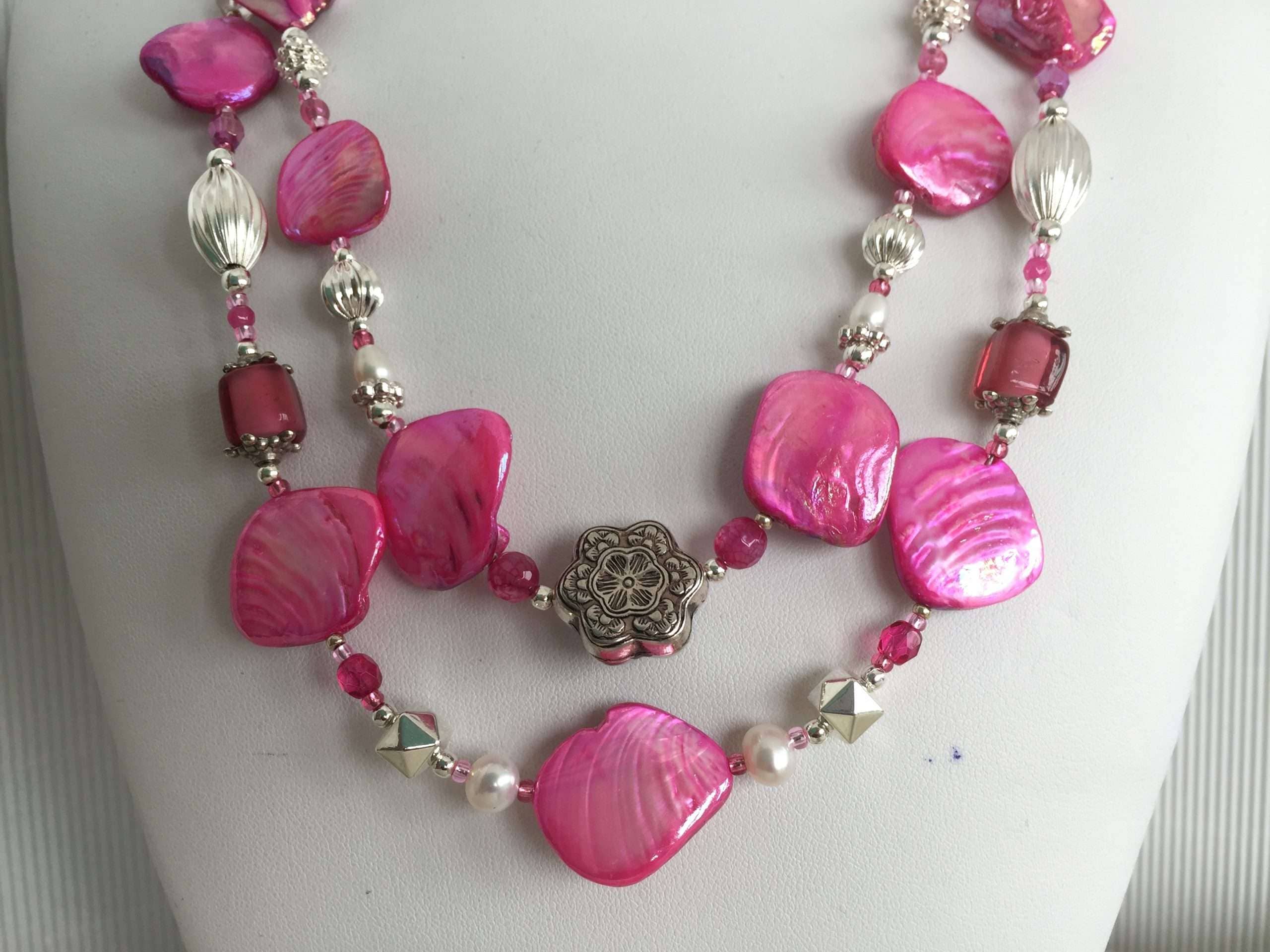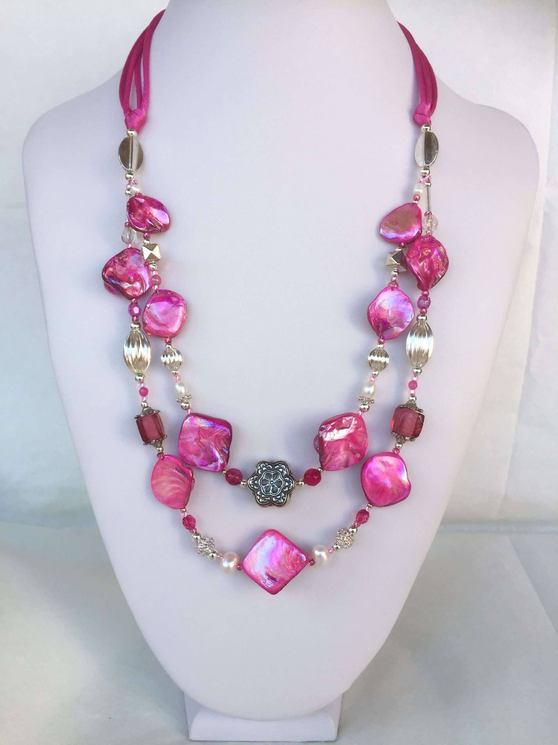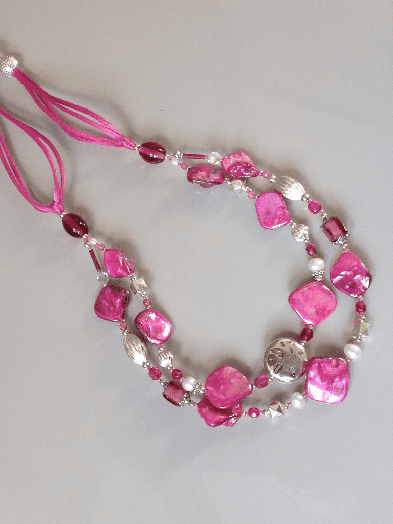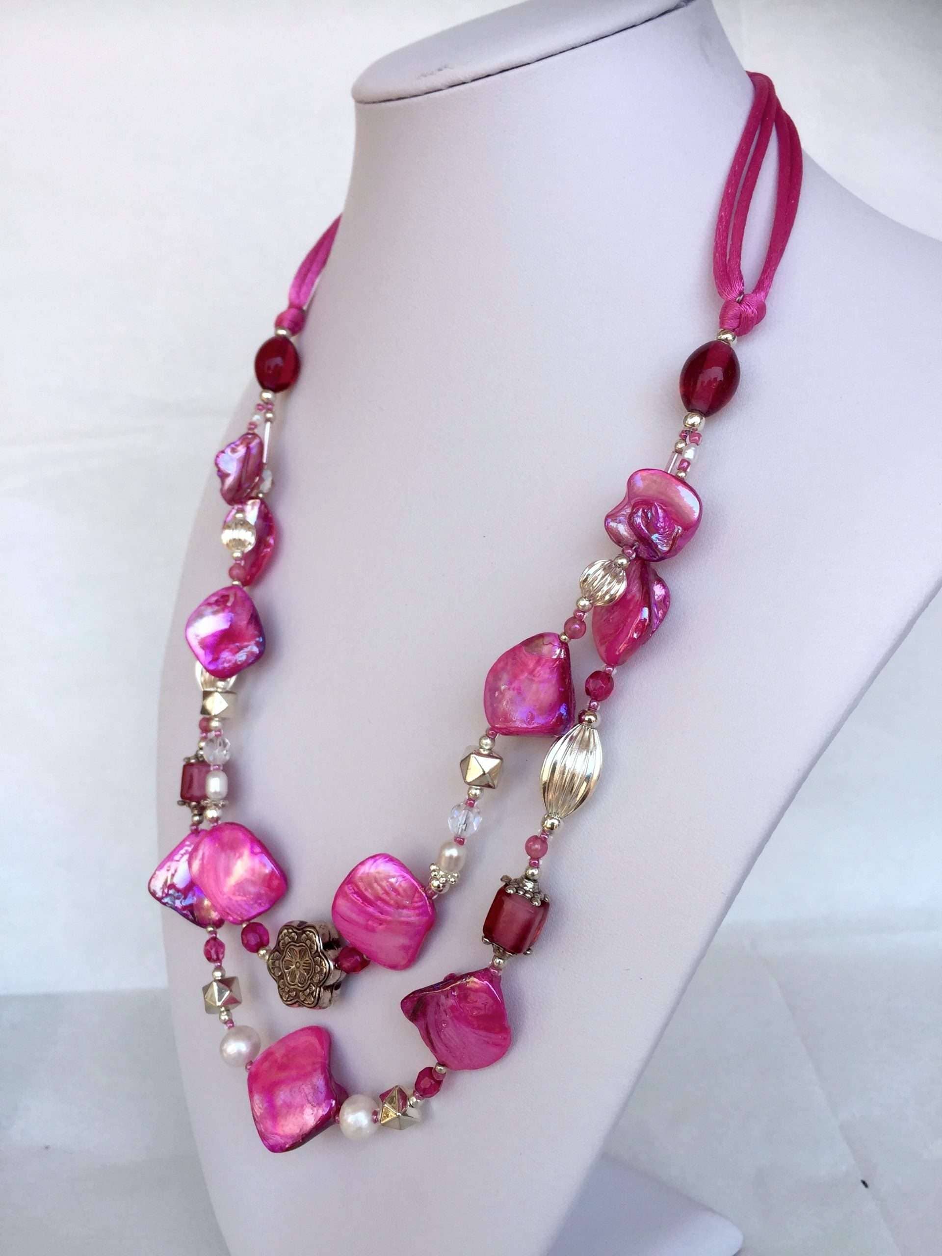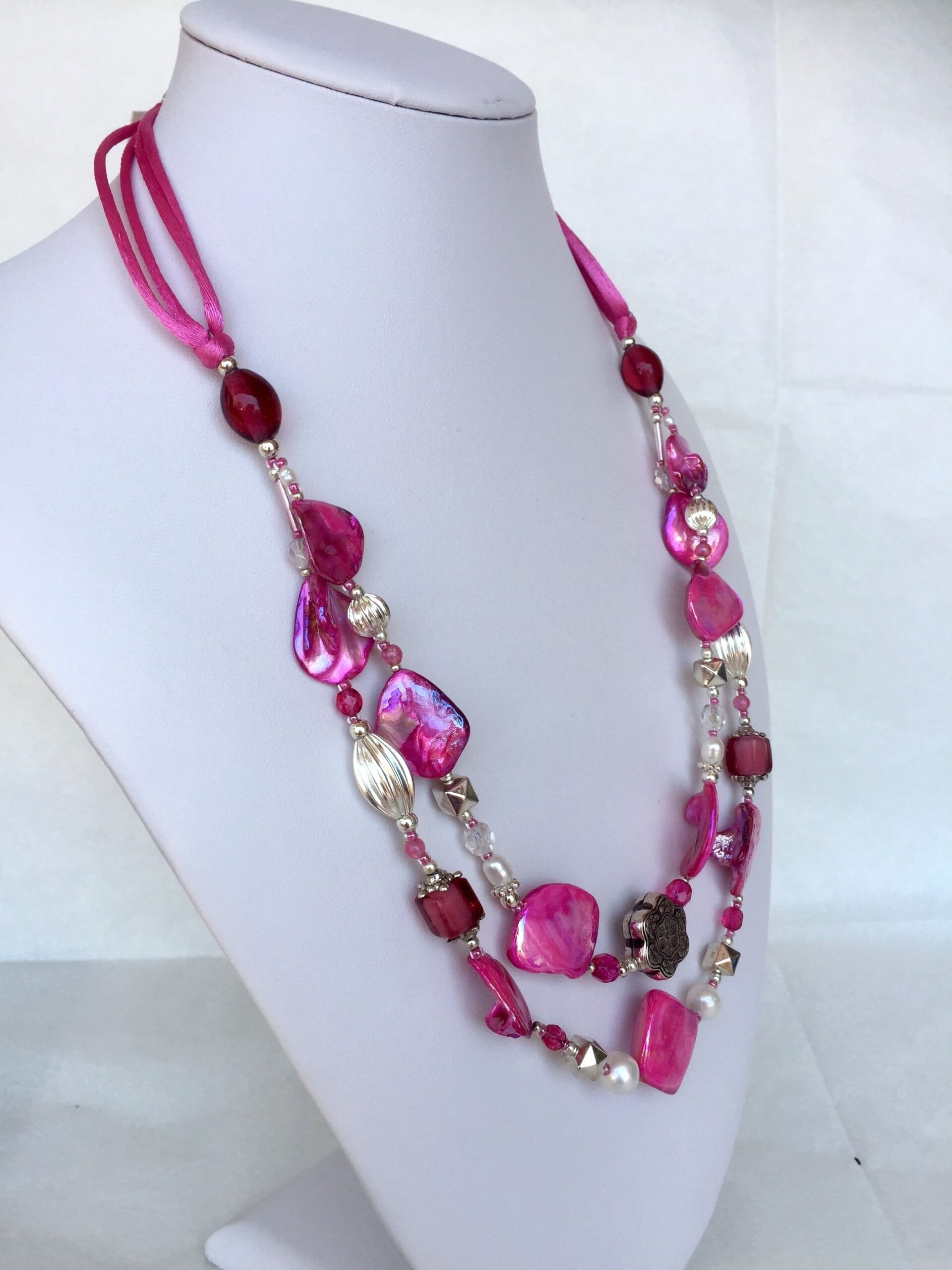 Collana LUMINOSA FUCSIA in madreperla e Pietre dure.
