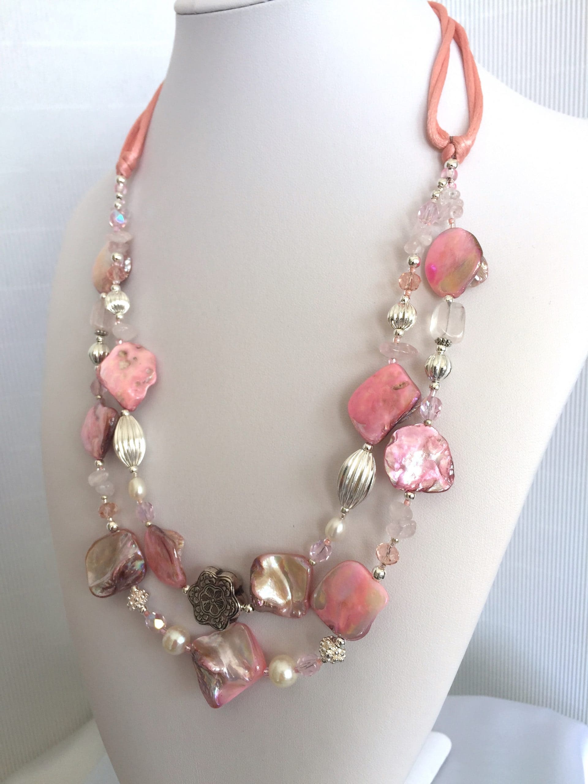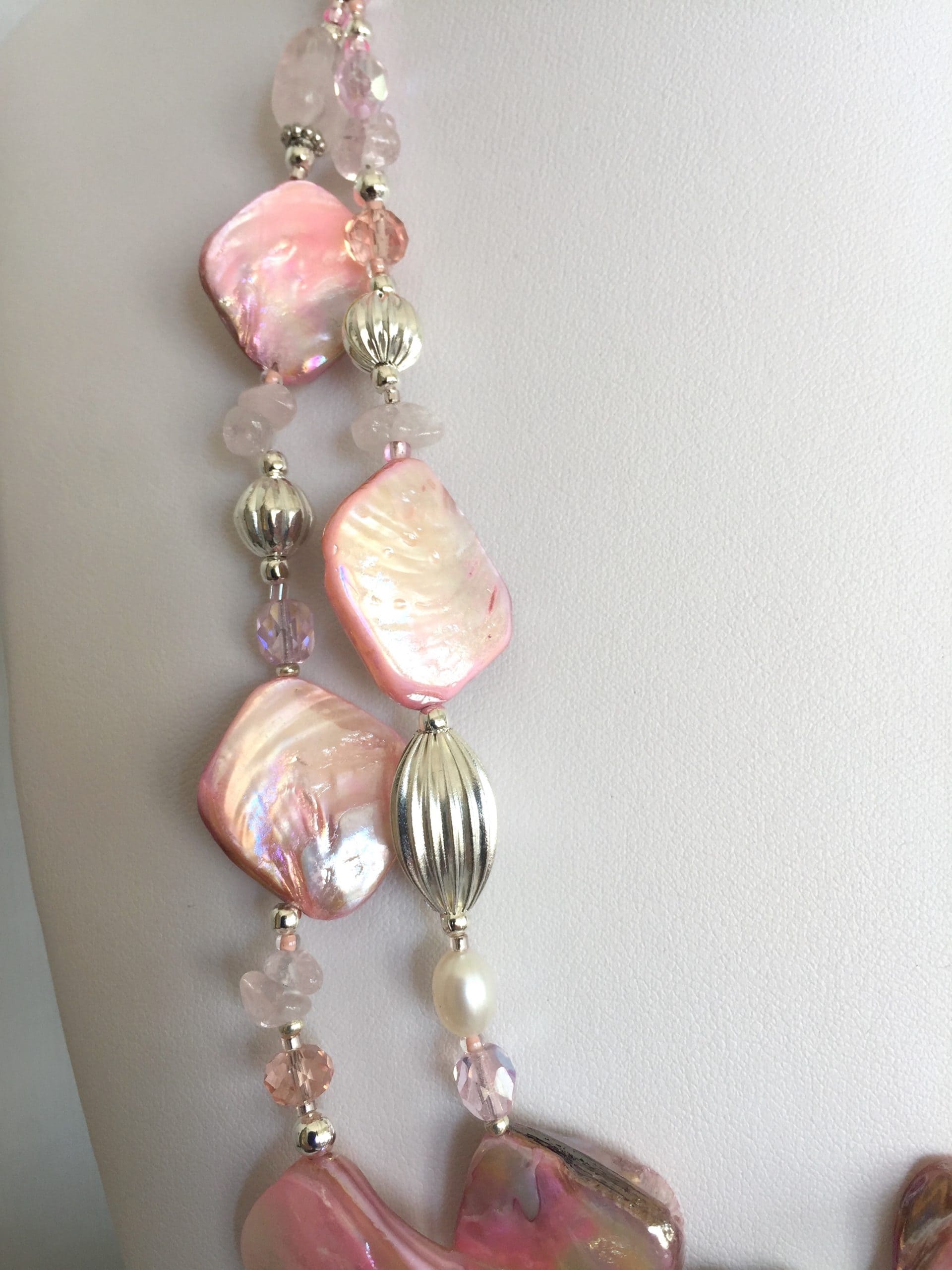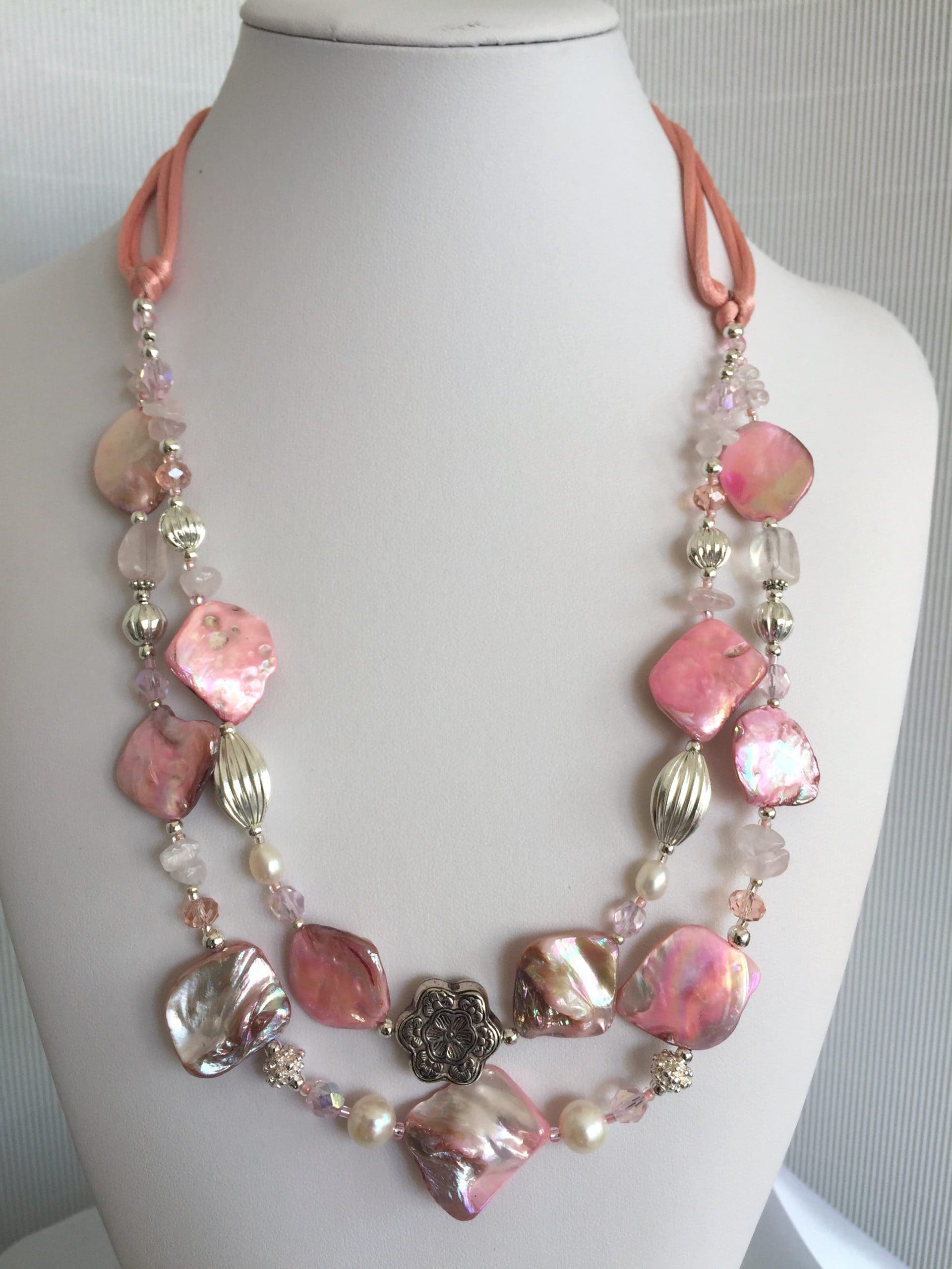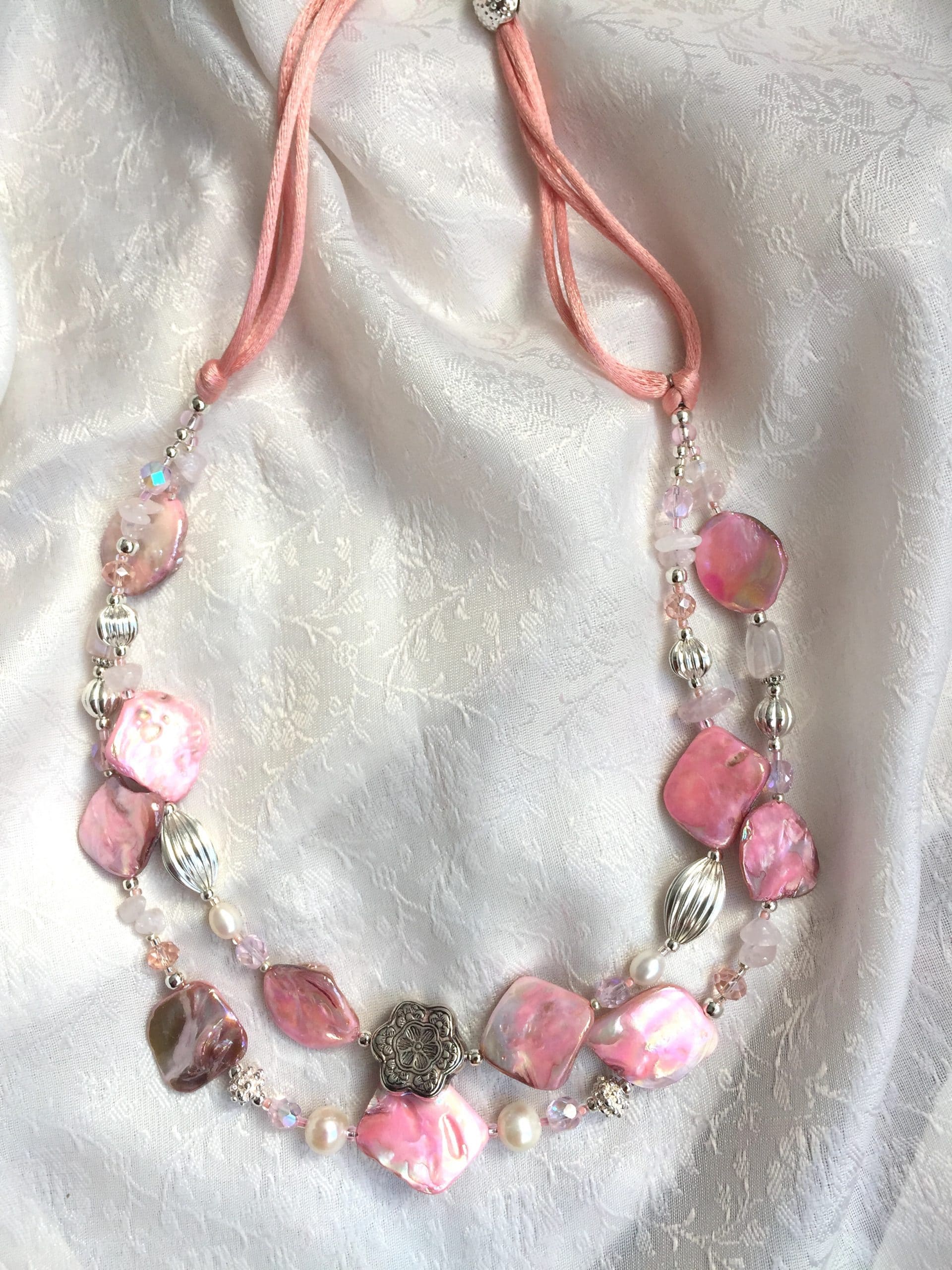 Collana Luminosa Rosa in madreperla e quarzo rosa.