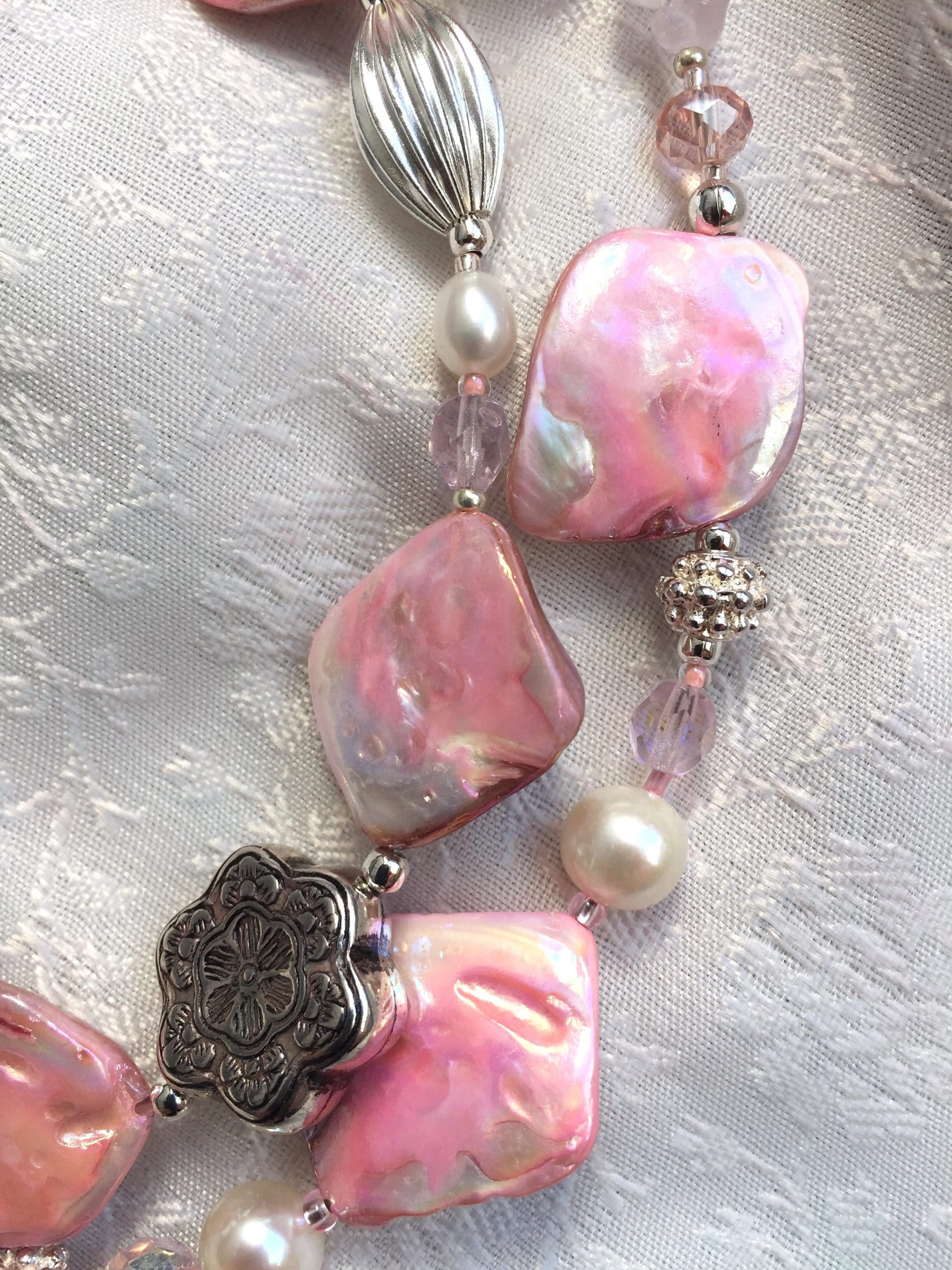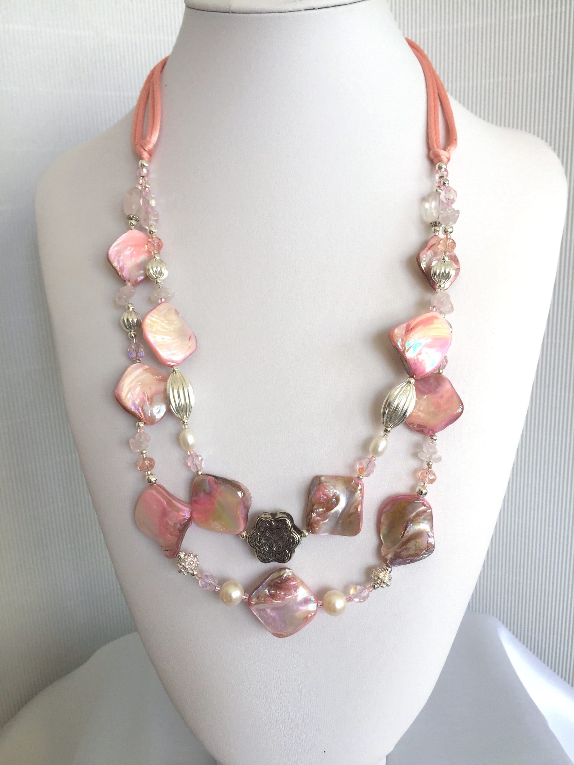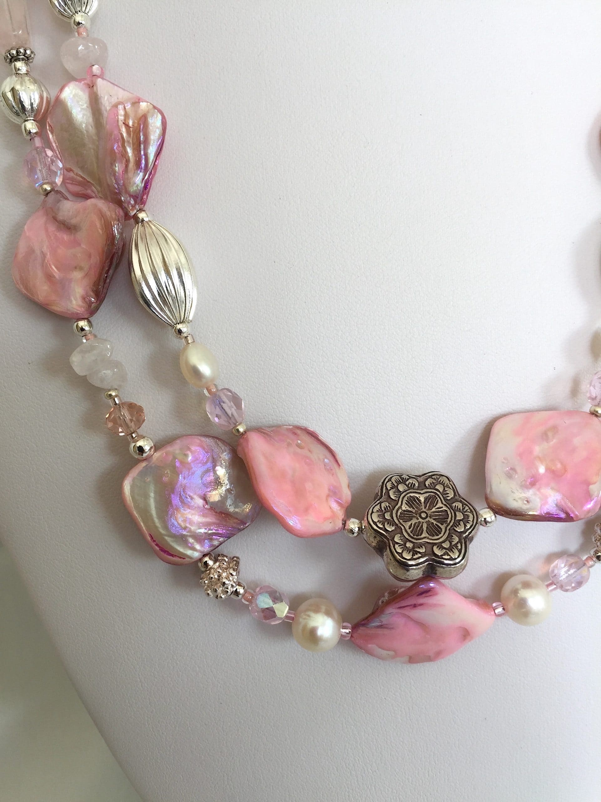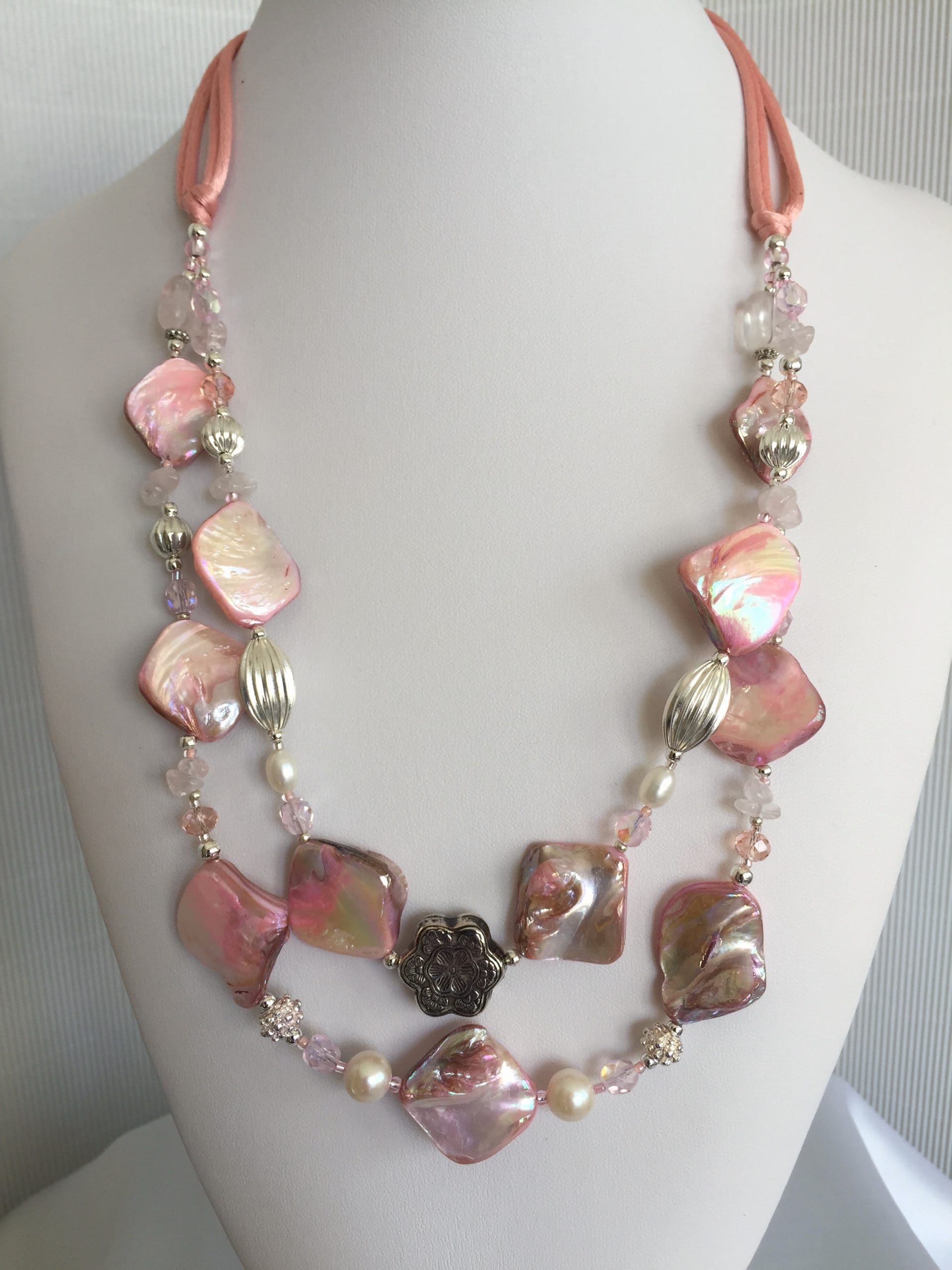 Collana Luminosa Rosa in madreperla e quarzo rosa.