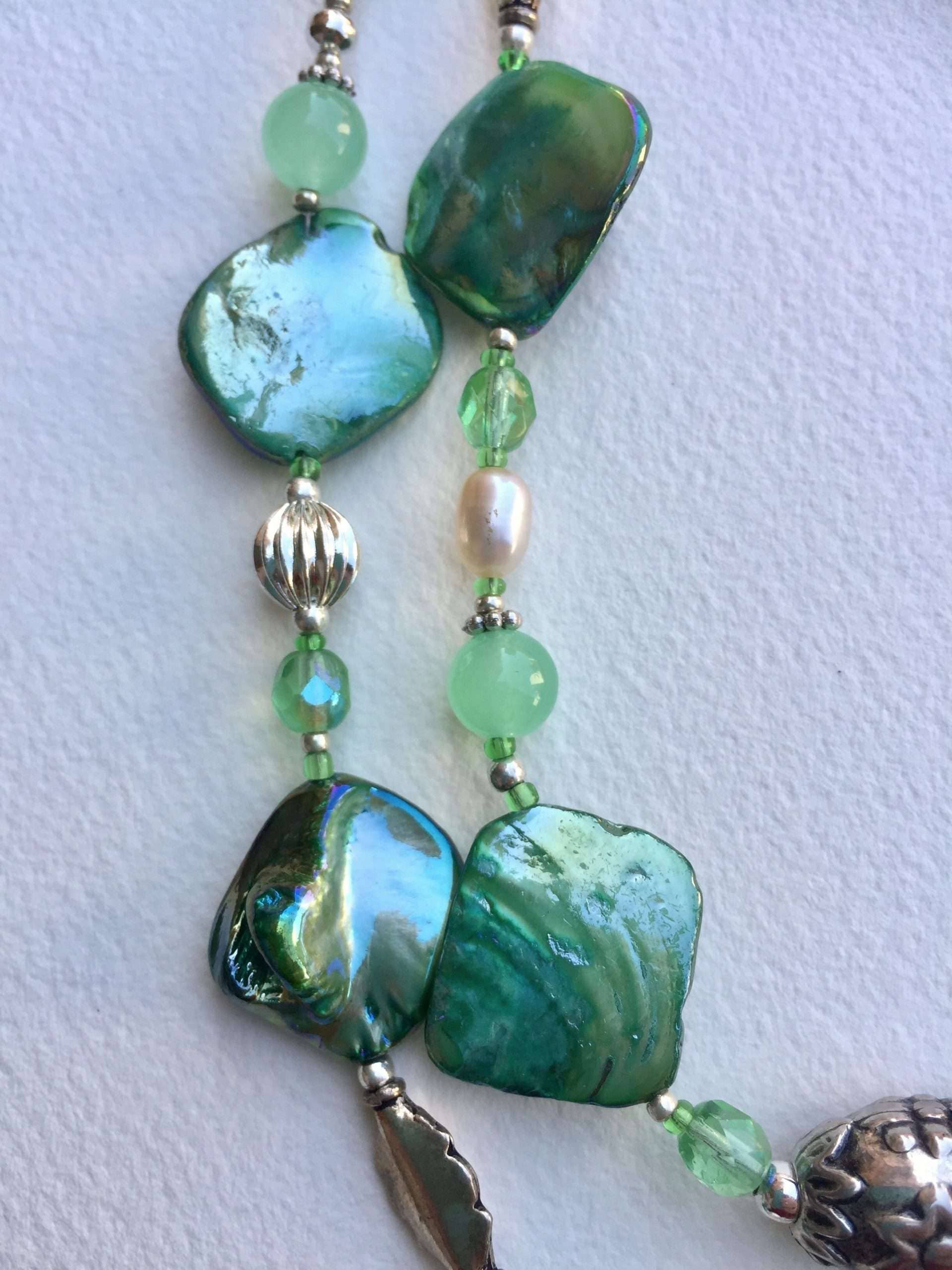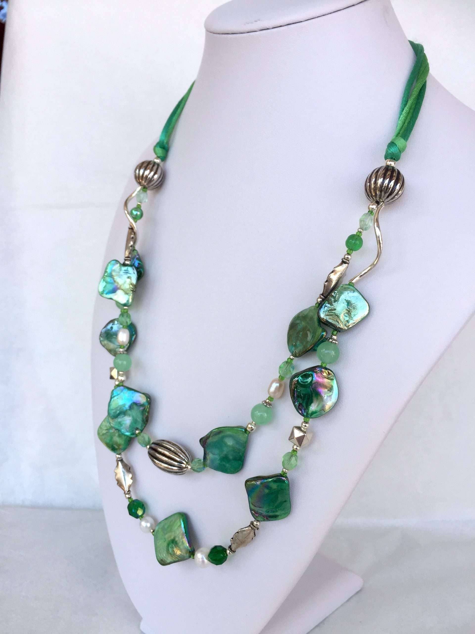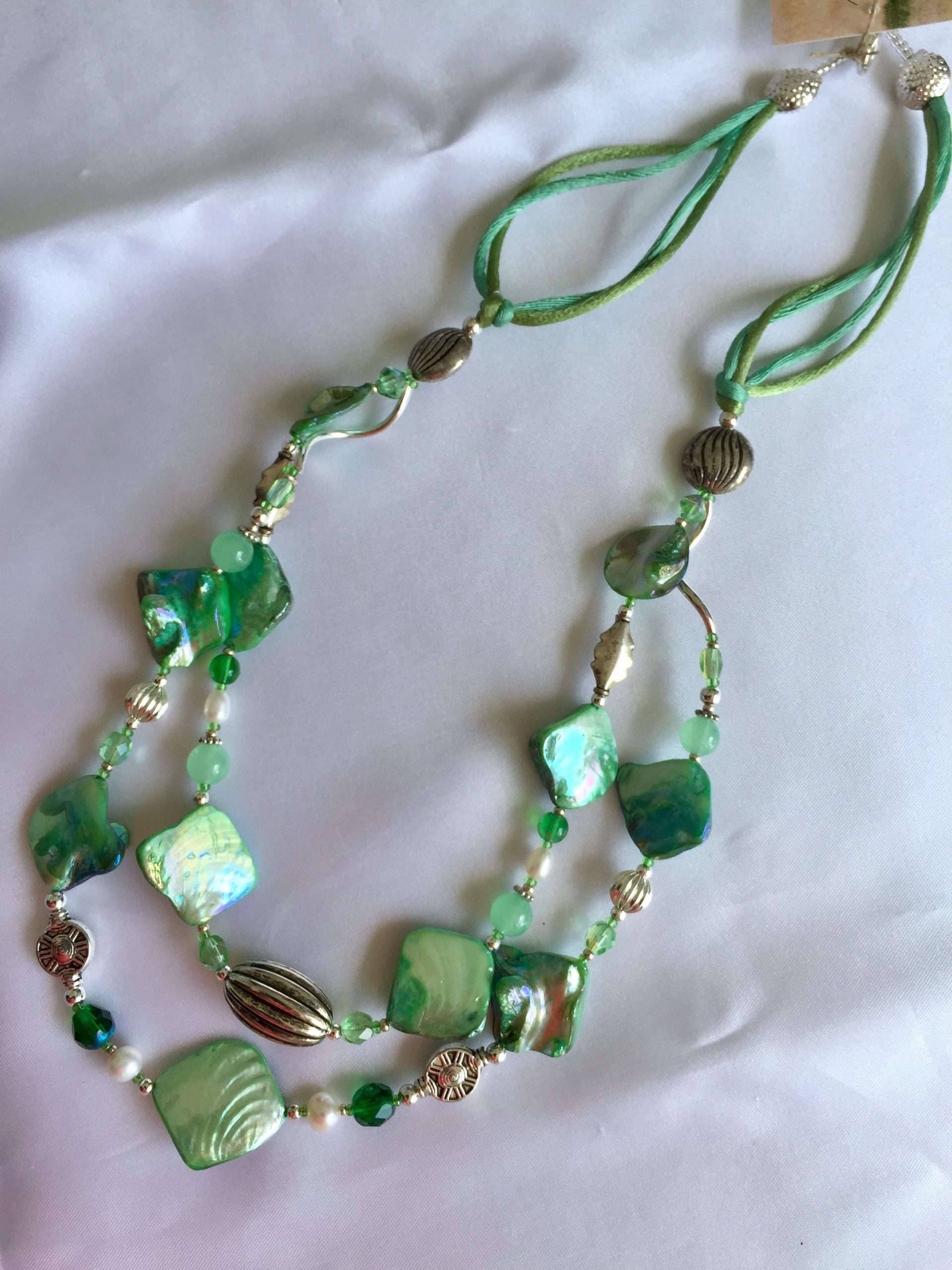 Collana LUMINOSA VERDE in madreperla e Pietre dure.