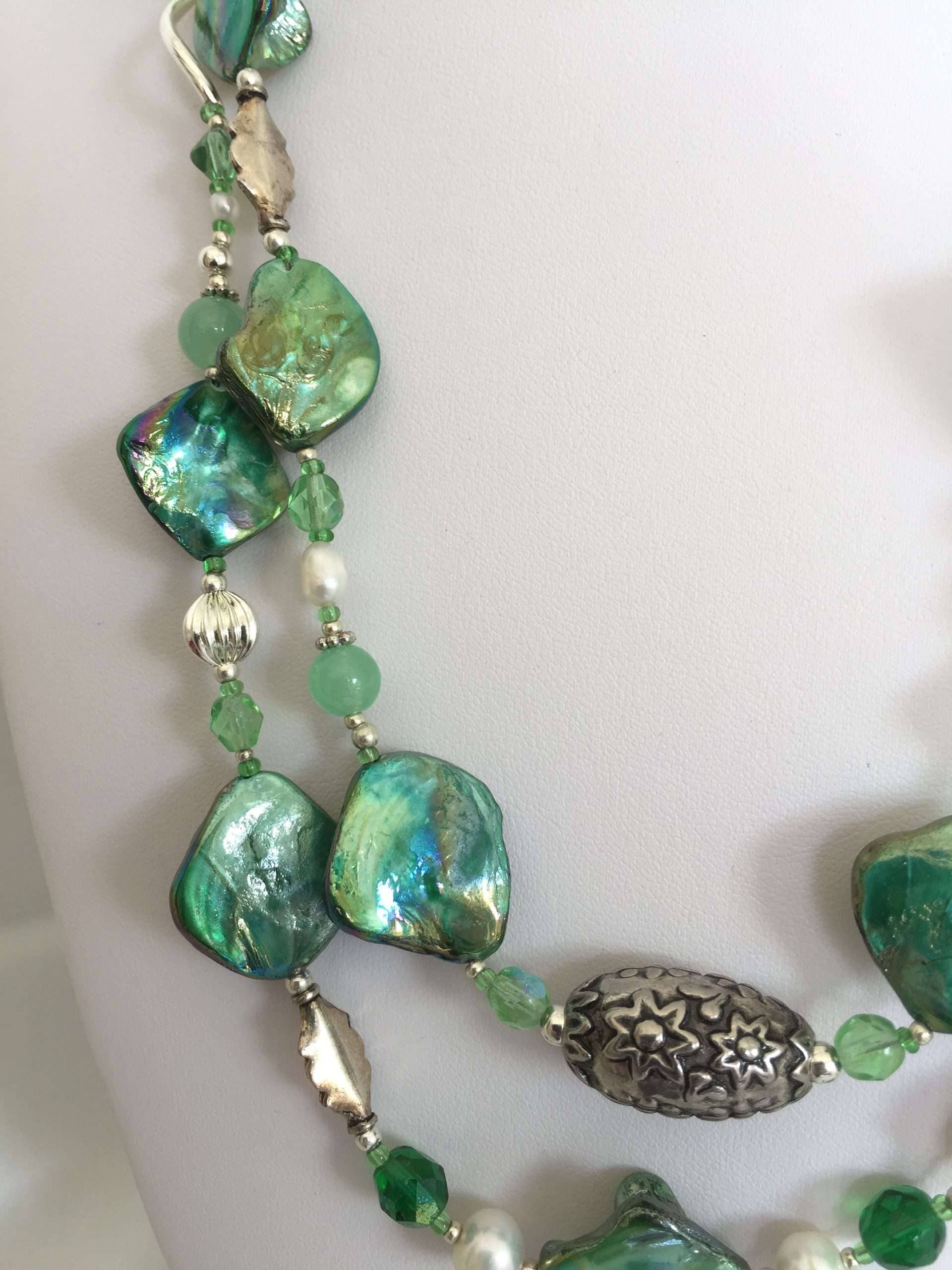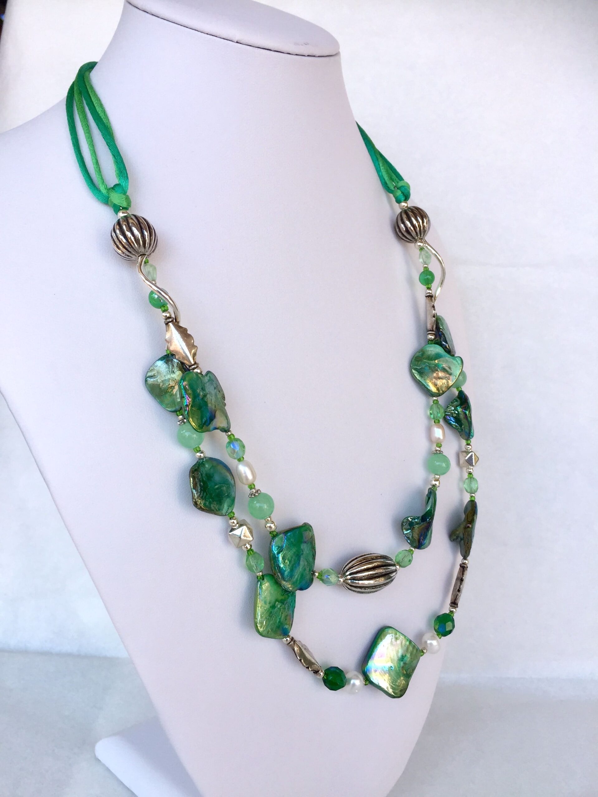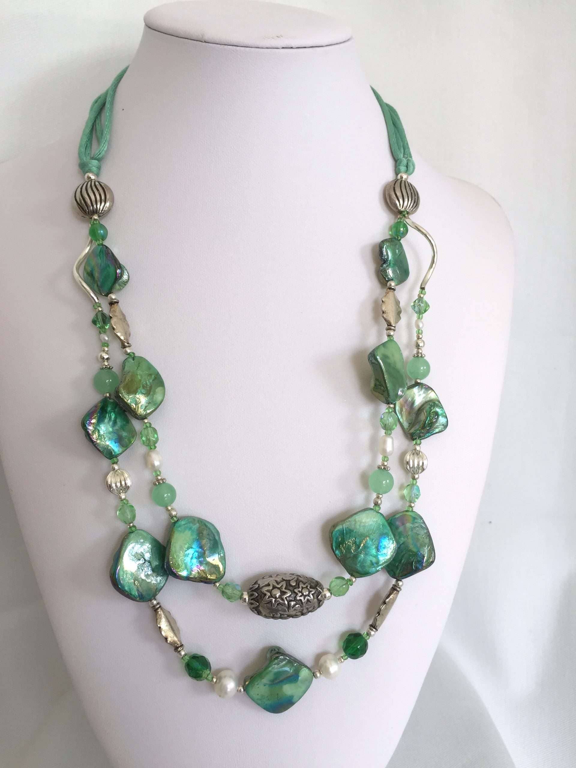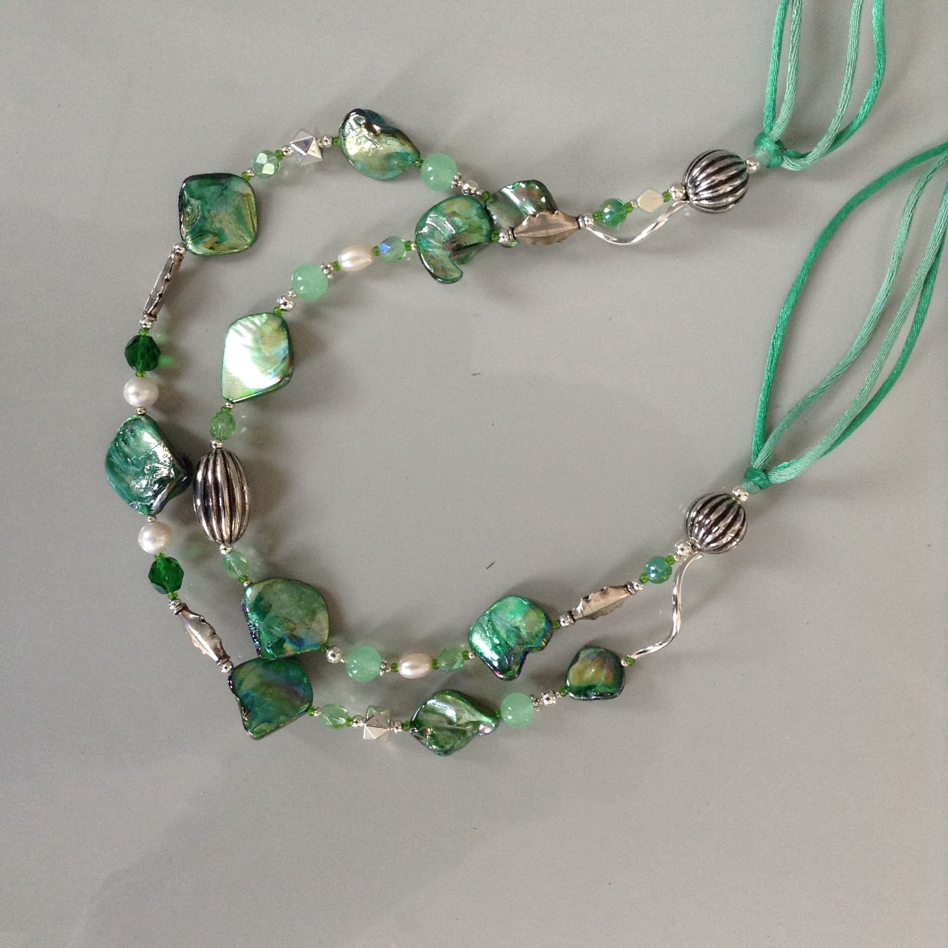 Collana LUMINOSA VERDE in madreperla e Pietre dure.