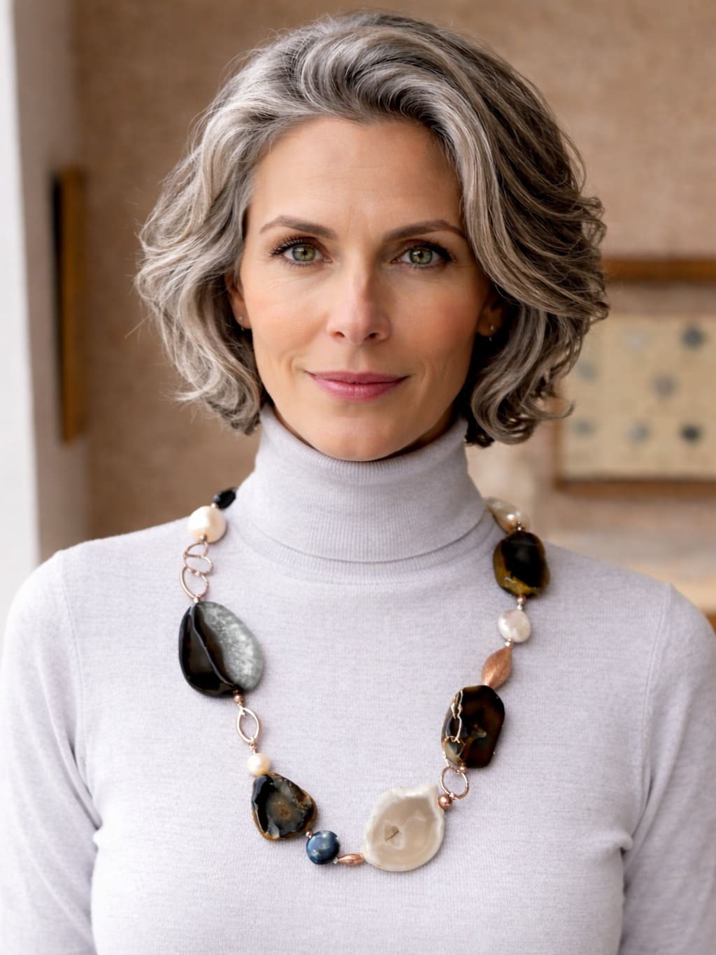 La particolarità della lavorazione delle pietre dure irregolari dona a questo insolito gioiello un glamour raffinato e grintoso. Vienna è capace di adattarsi con facilità a qualsiasi vostro outfit, sia sportivo che elegante.