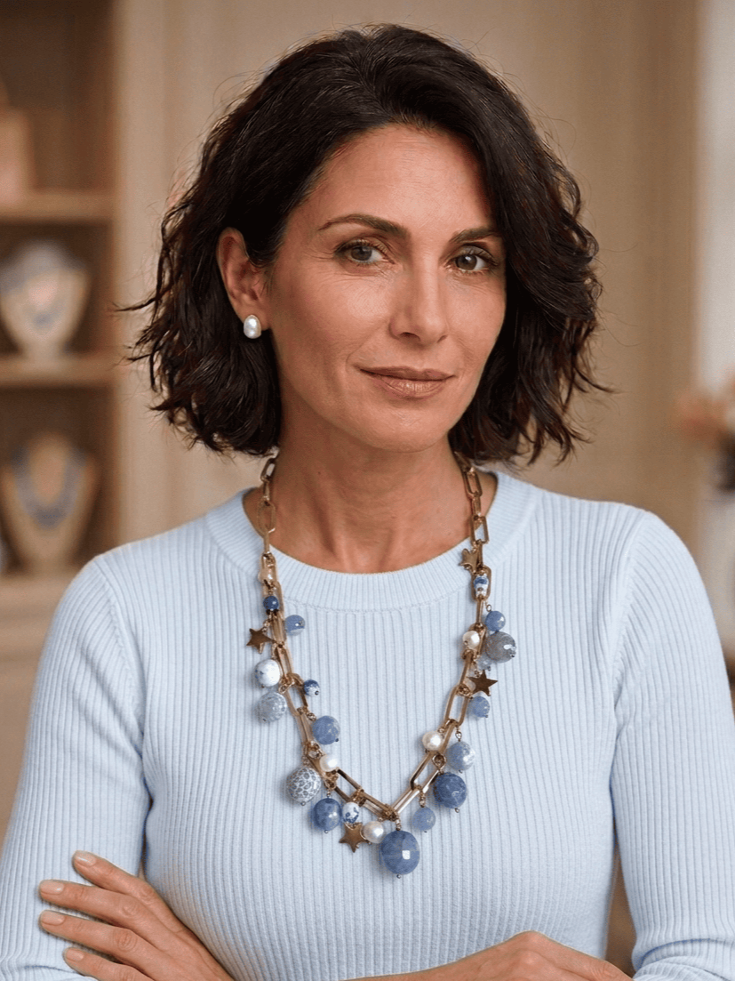 Collana FIORDALISO azzurra in Pietre dure e acciaio, regolabile.