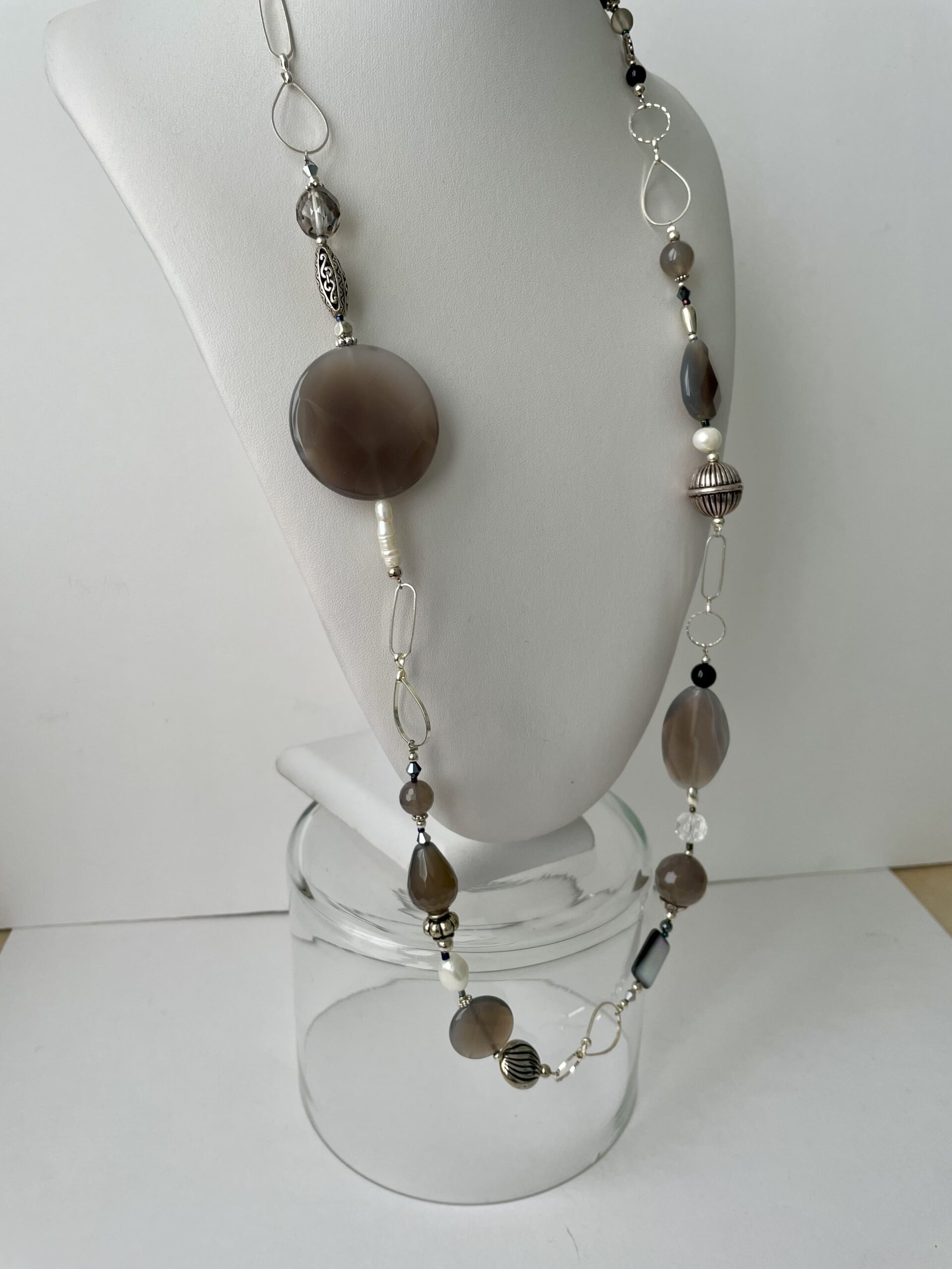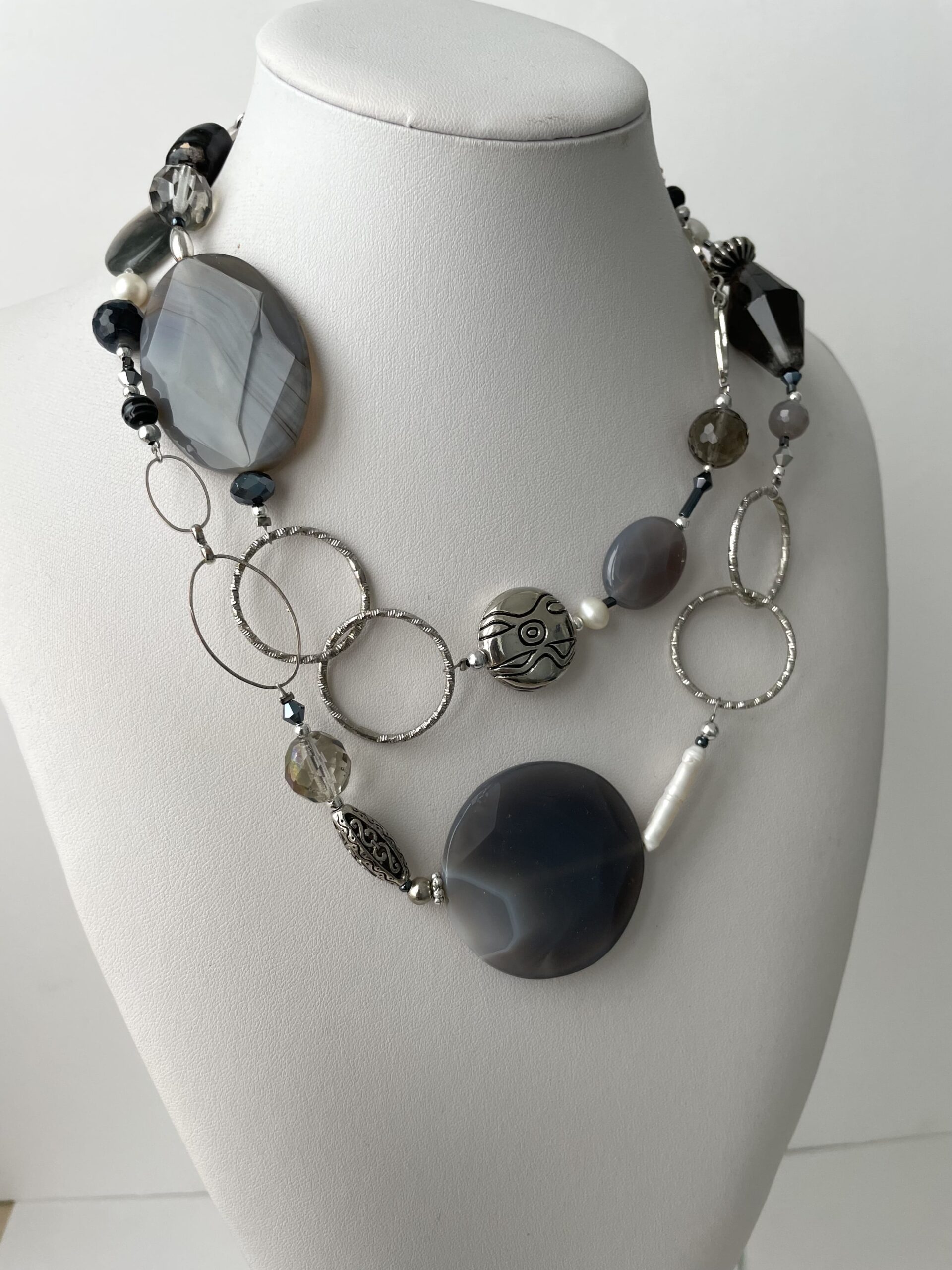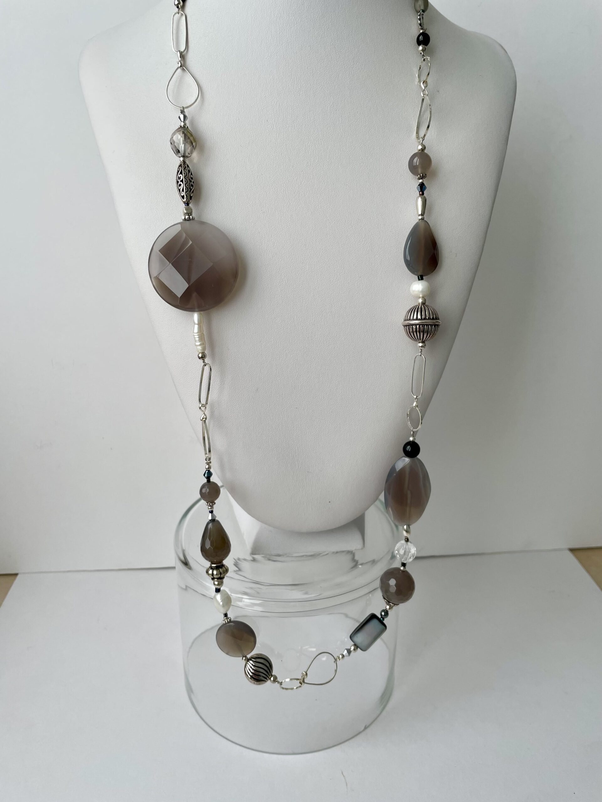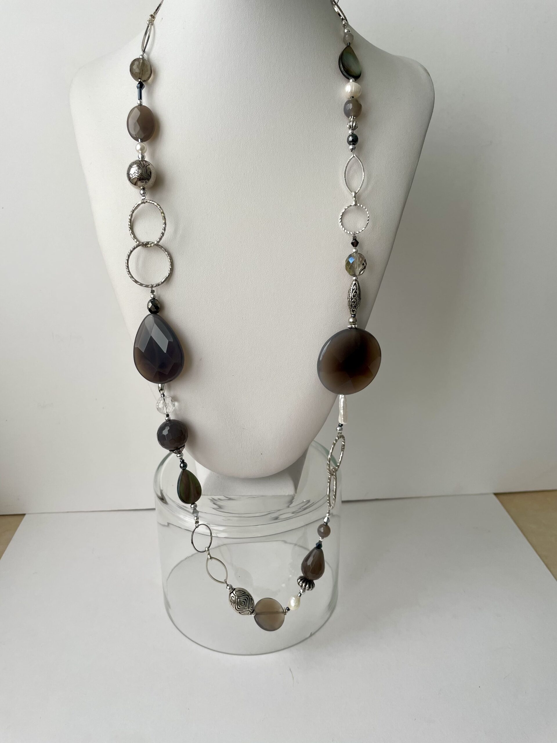 Collana lunga grigia Pietre dure NUVOLA. Serie Limitata. Scontata del 10%