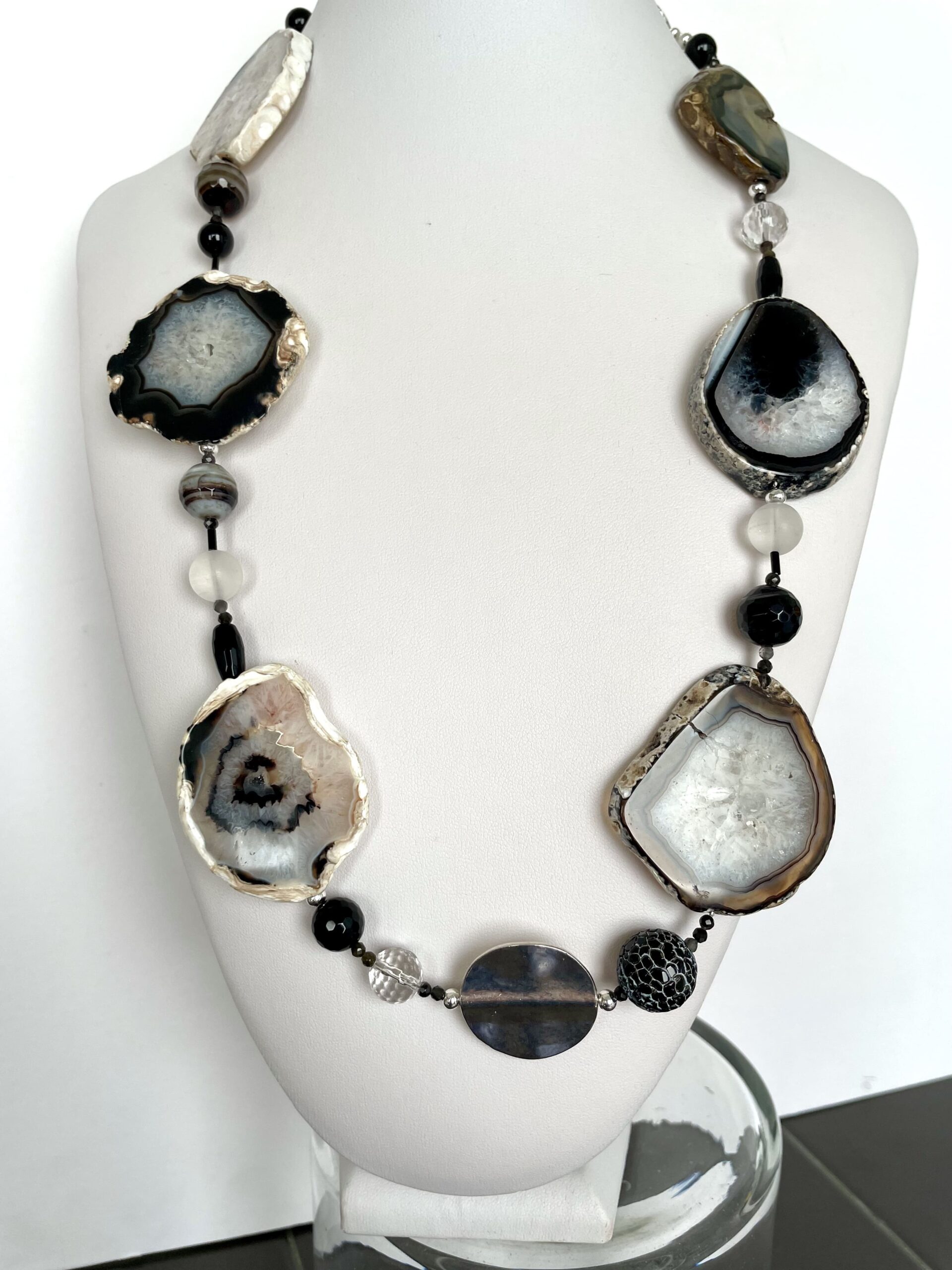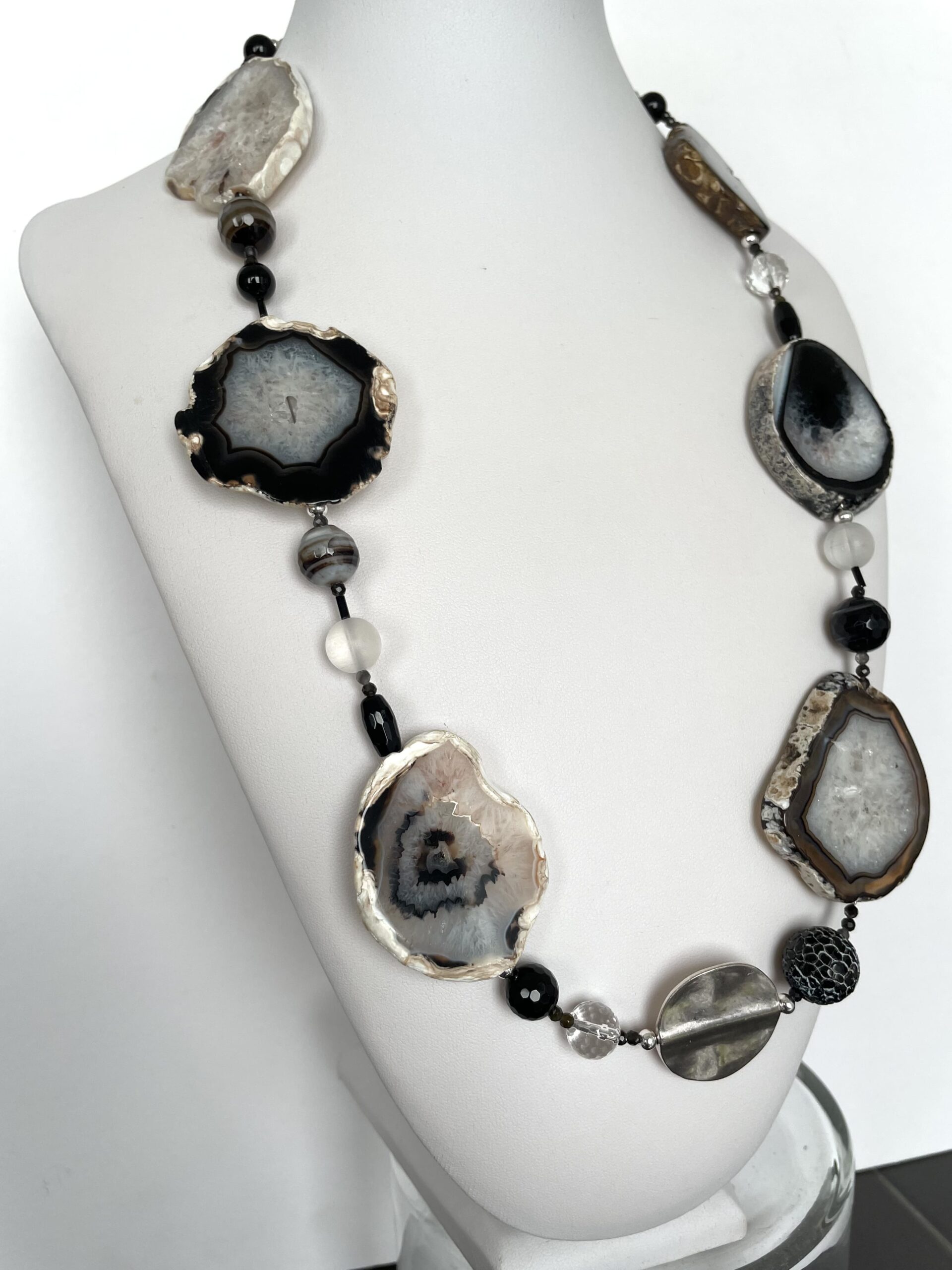Grandi Agate tranche nelle sfumature del nero, del bianco e qualche volta anche del marroncino.