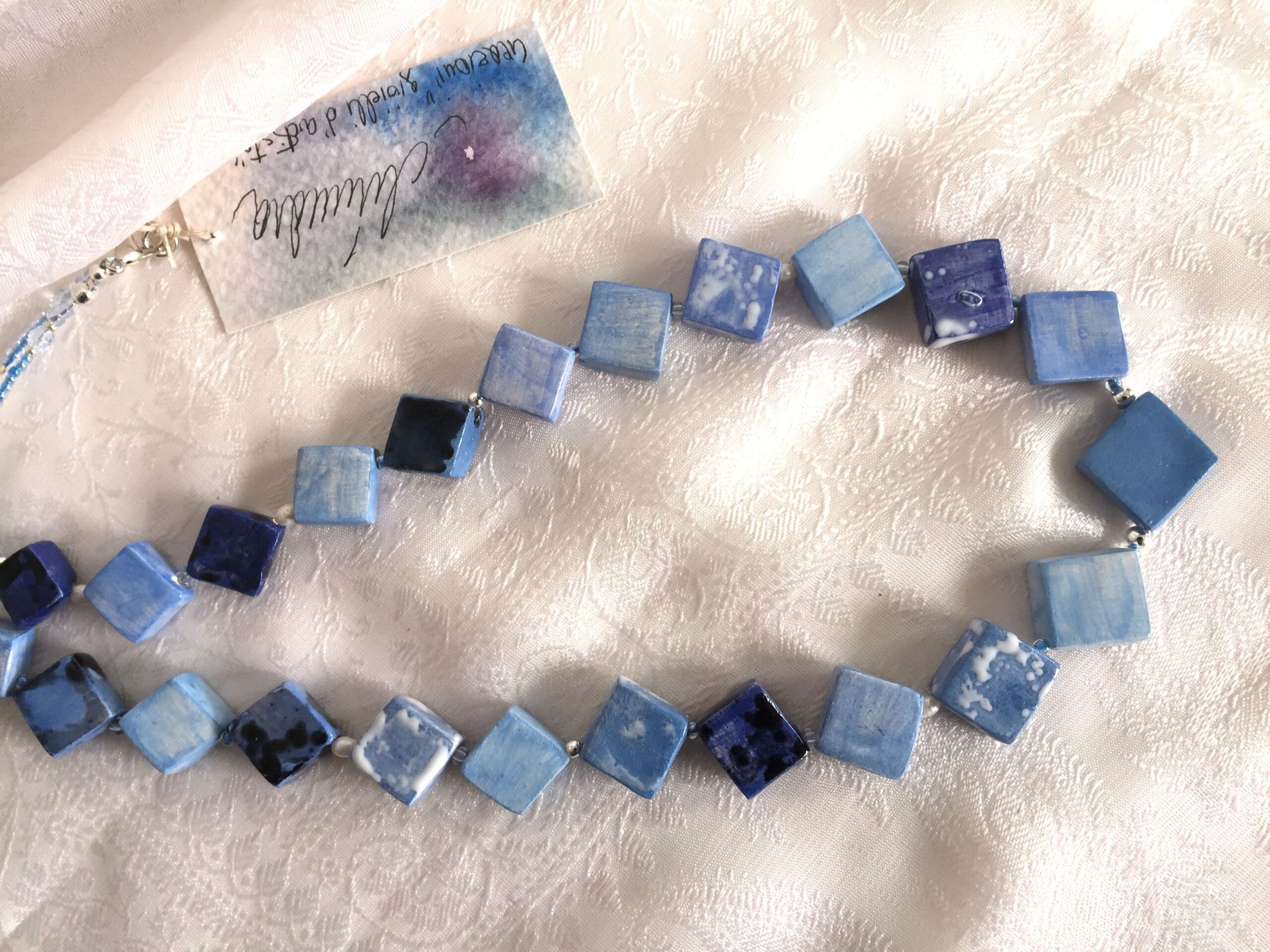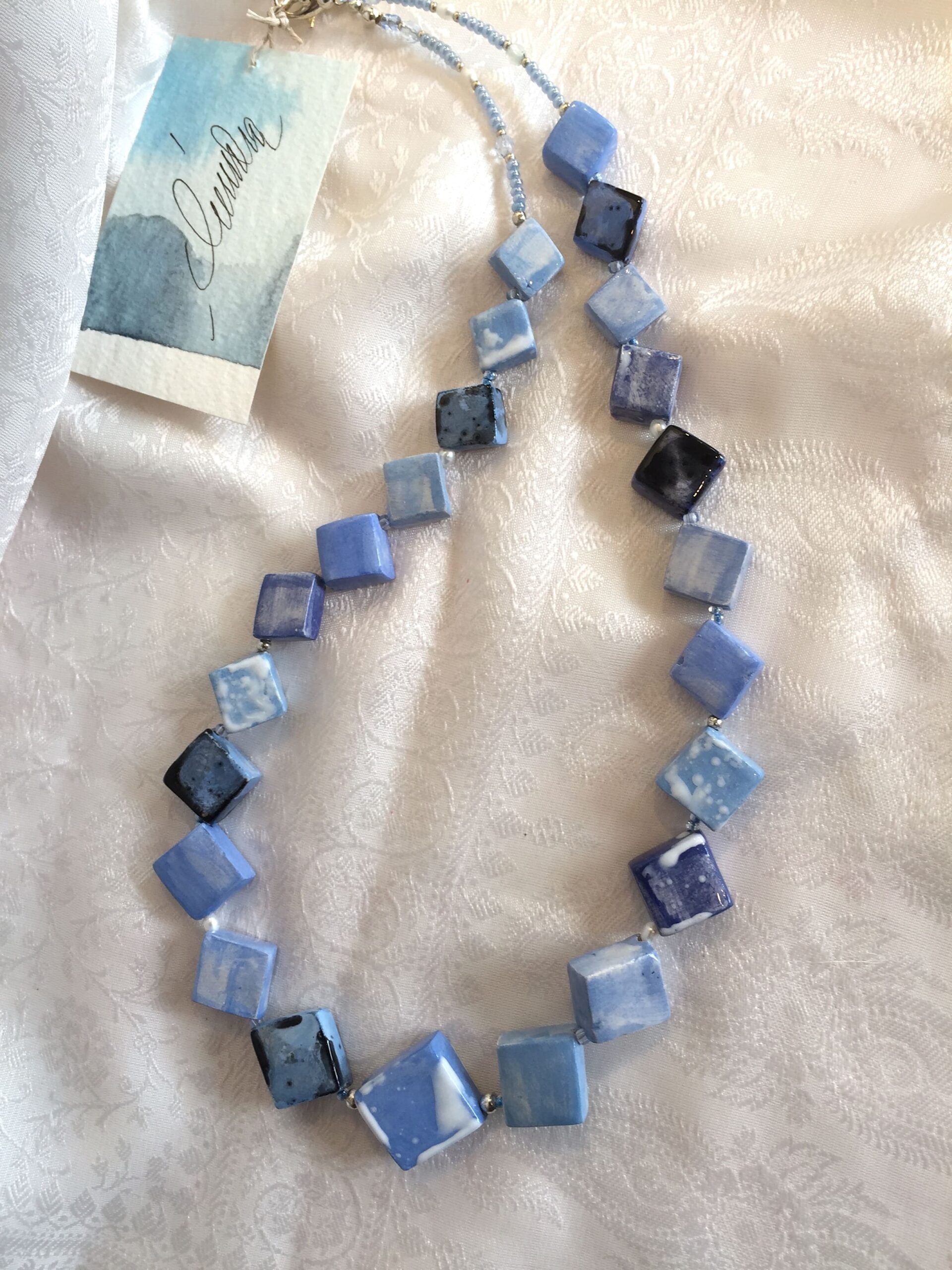collana azzurra ceramica QUADROTTA