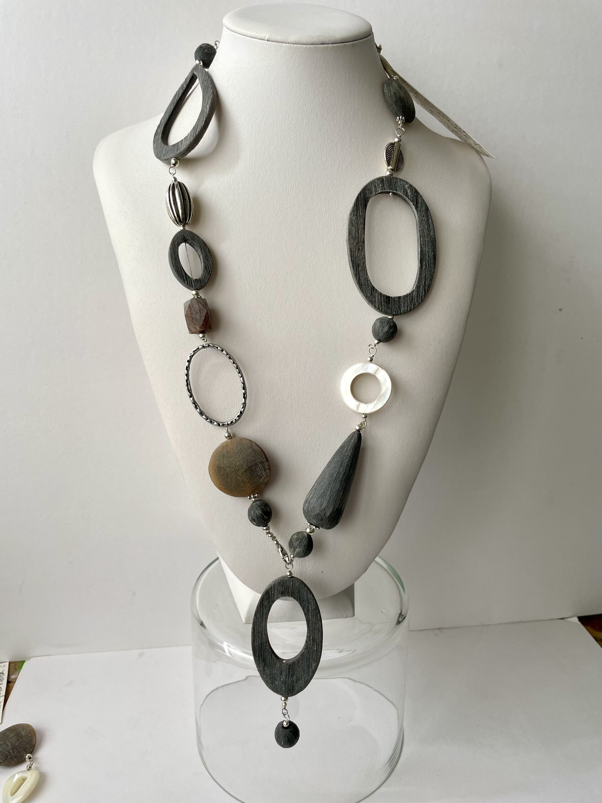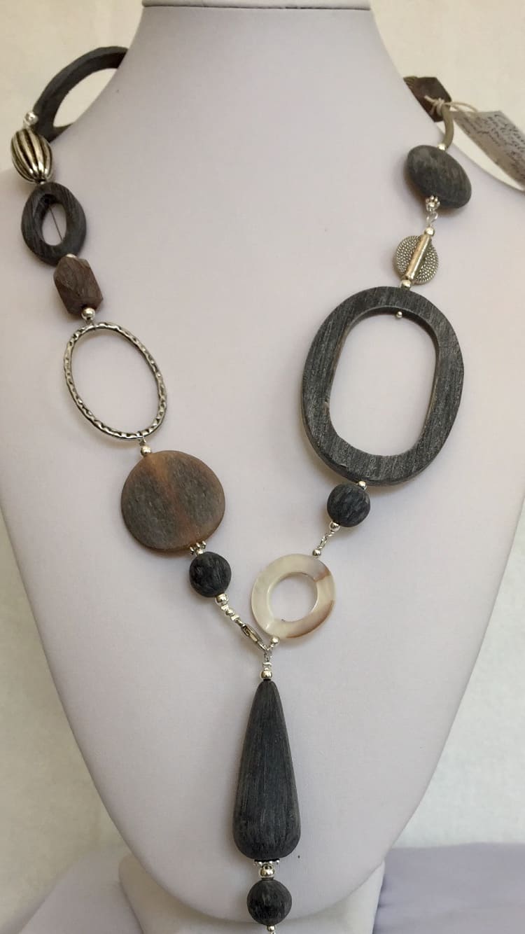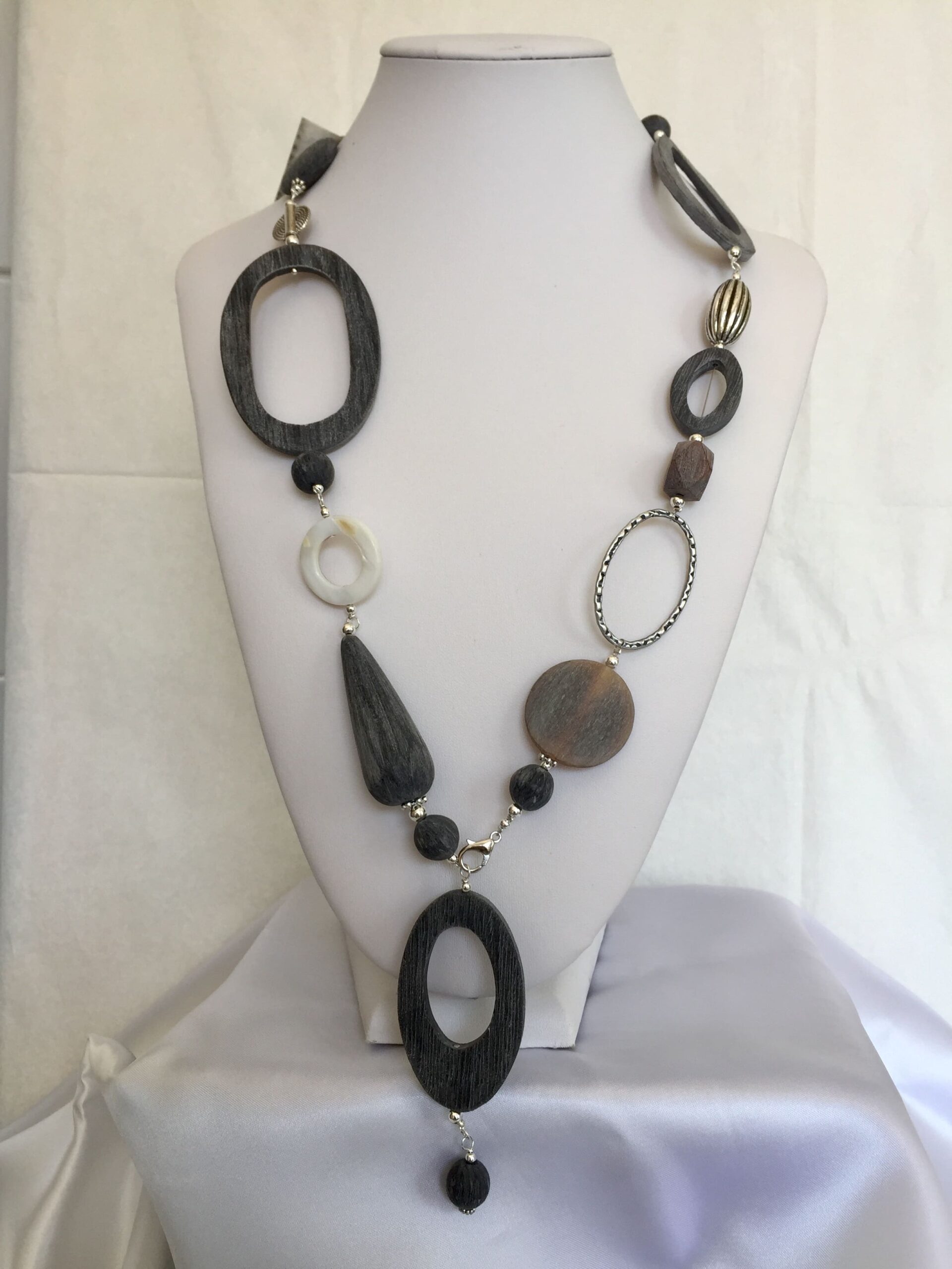 Collana FRIDA lunga in corno grigio naturale.
