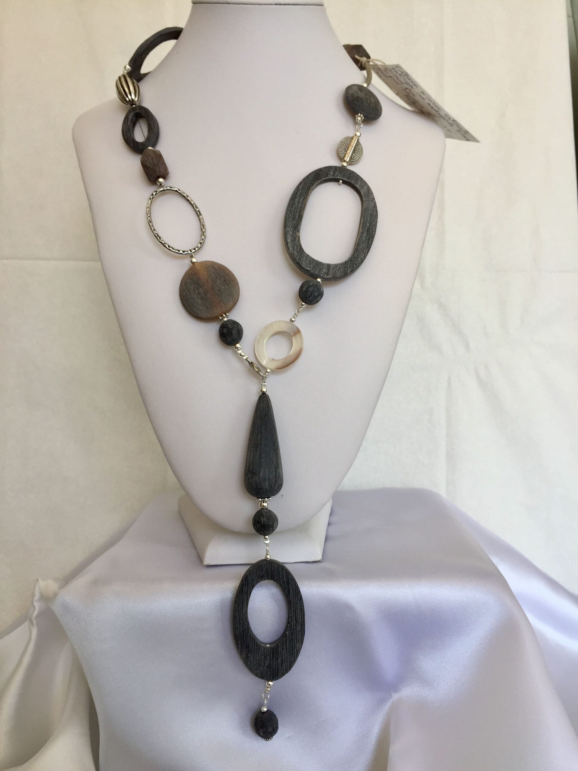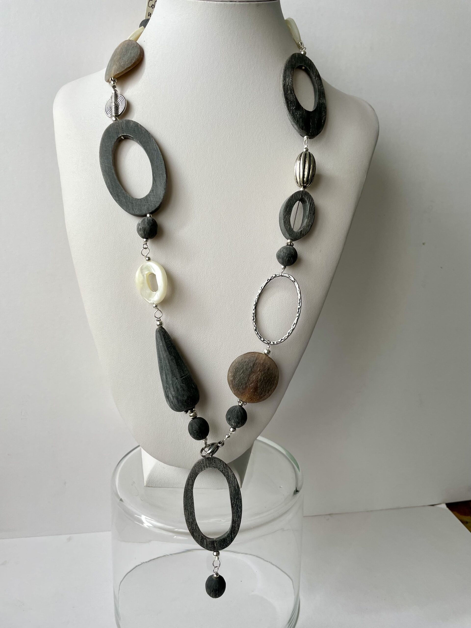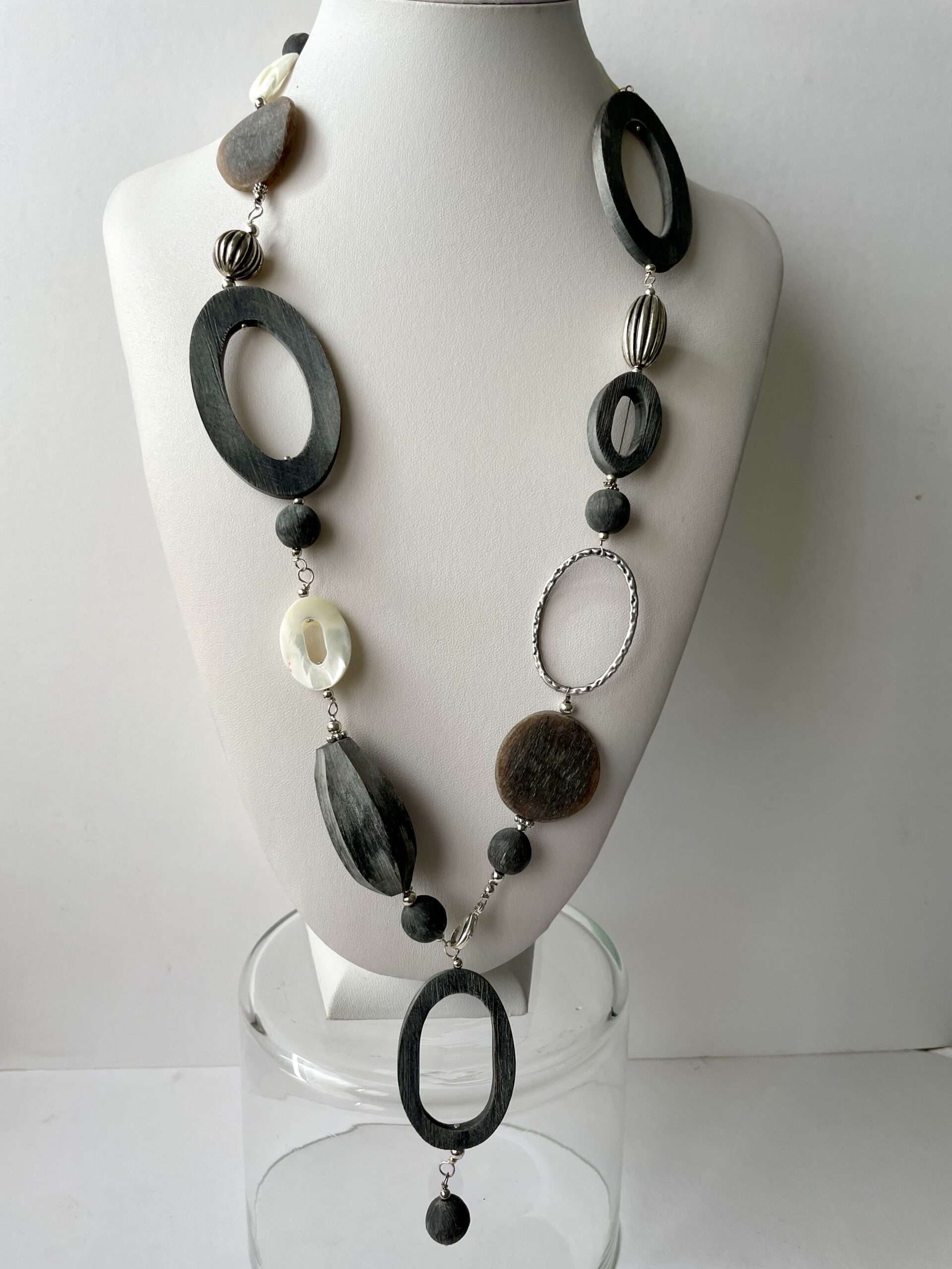 Collana FRIDA lunga in corno grigio naturale.