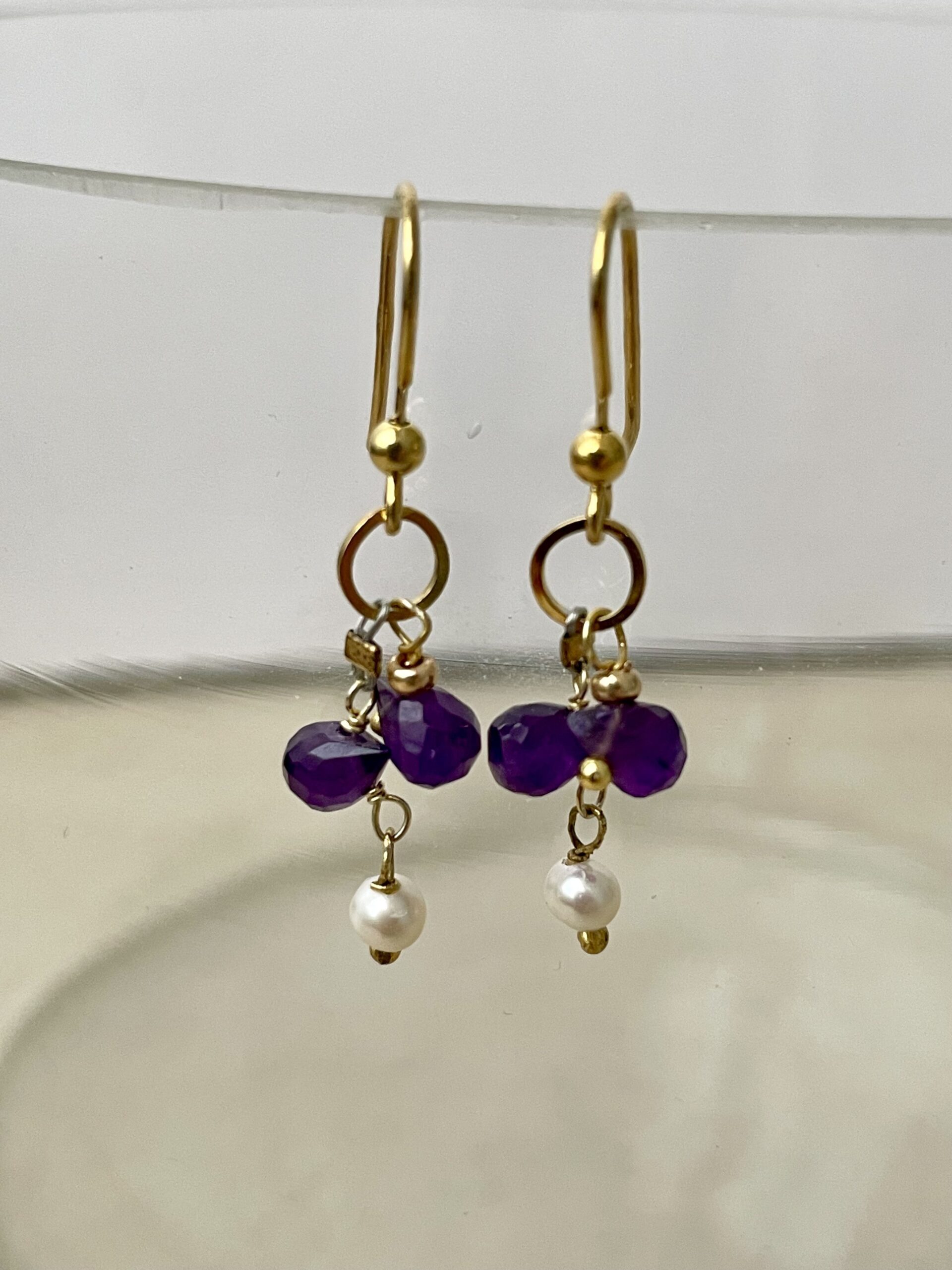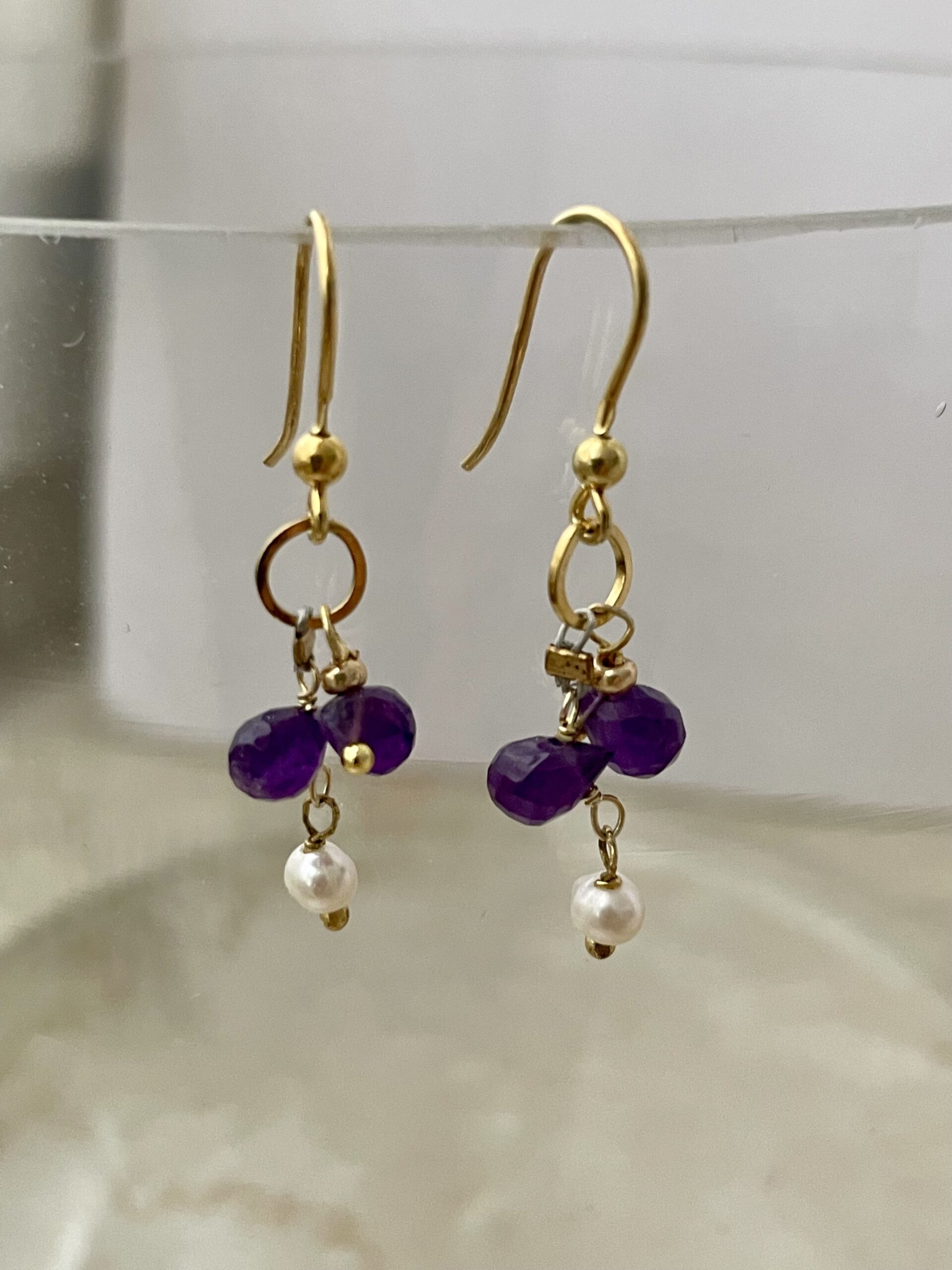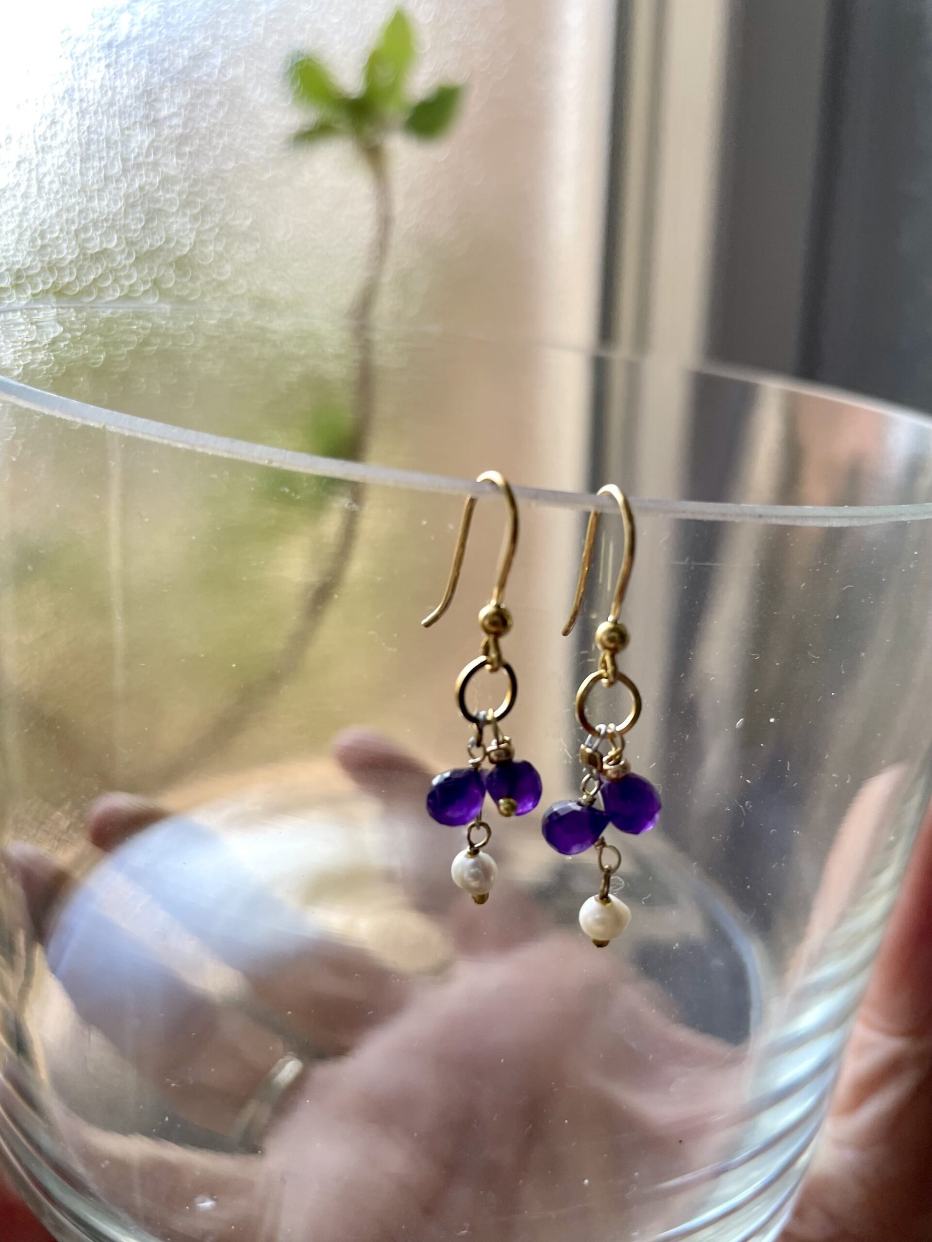 Costituiscono il naturale completamento della collana Gocce di Viola. Sono stati realizzati in un’unico esemplare con gocce sfaccettate di ametista e argento 925.